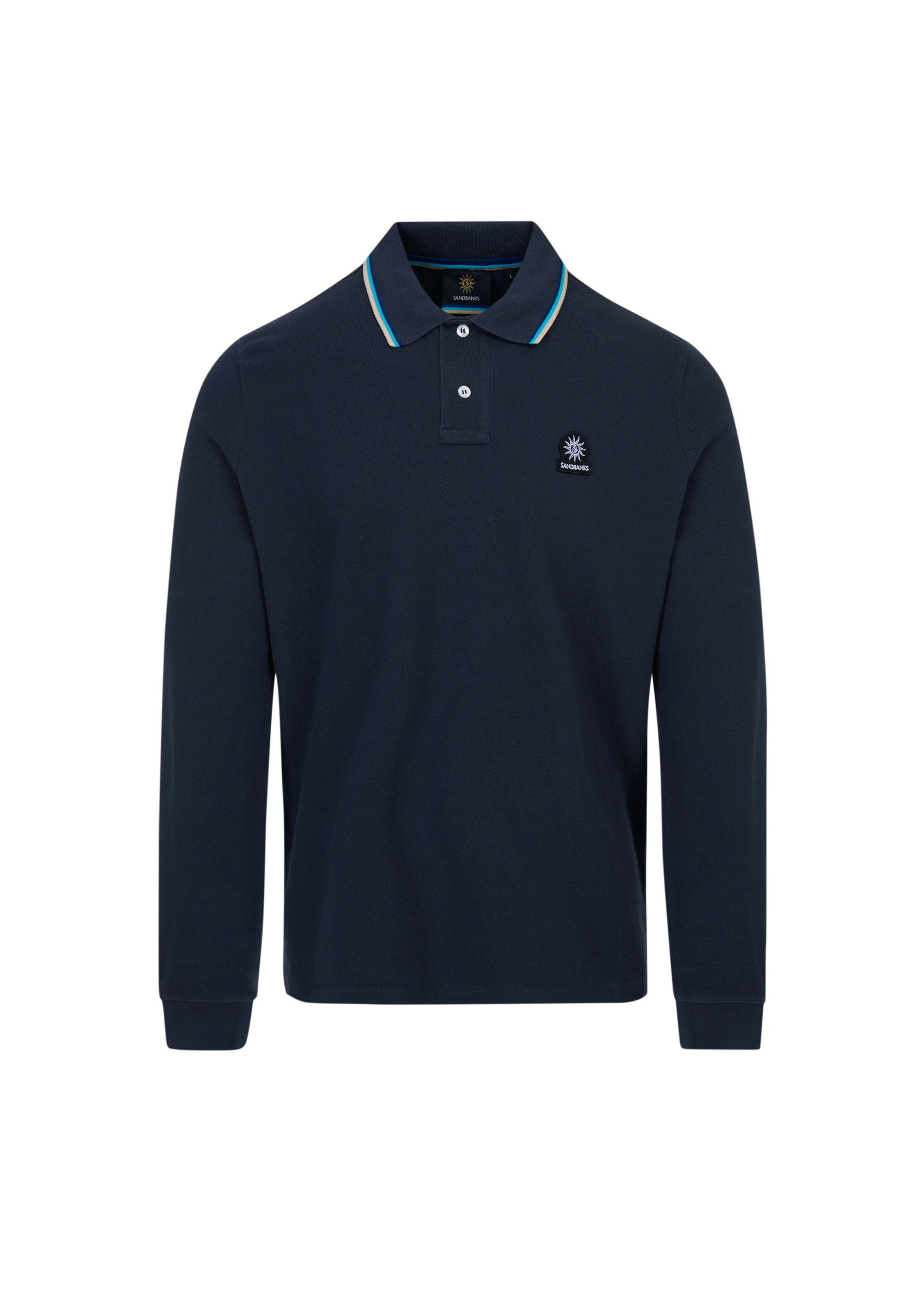 Sandbanks Badge Logo Long Sleeve Polo ShirtNavy
