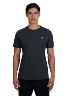 Sandbanks men's badge logo t-shirt in anthracite, made from mercerised cotton for a silky and luxurious feel. This classic fitting crew neck t-shirt features an embroidered badge logo on the chest and tri-colour back neck binding.