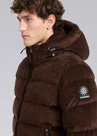 Our signature Sandbanks Banks puffer jacket transformed into statement outerwear as part of our Artisan Series. This luxury jacket is crafted from Italian artistry corduroy fabric that is finished with a water repellent coating so that water beads off the surface. Meticulously finished with gun metal components and Lampo zips, this puffer has high thermal retention and features a Sandbanks embroidered logo badge, detachable hood and filled with recycled natural down.