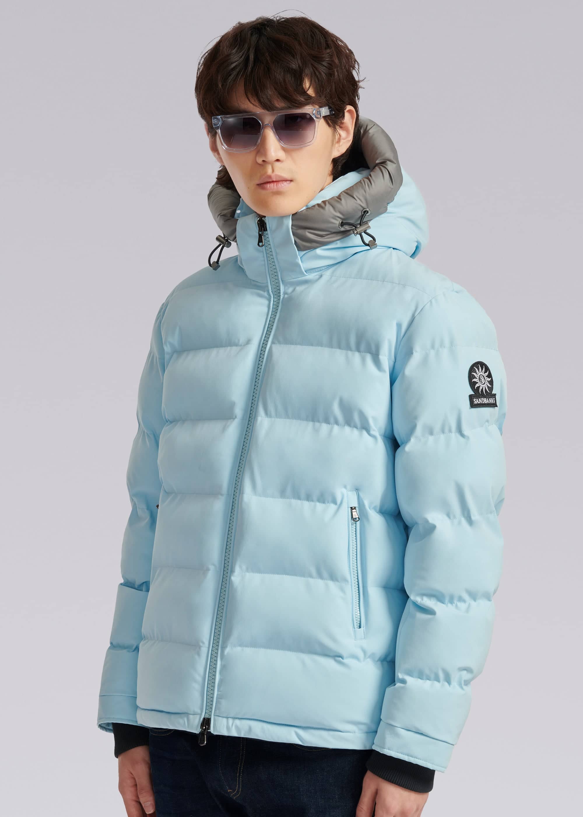 Sandbanks Banks puffer jacket is made almost entirely from recycled plastic bottles. With a crystal blue shell fabric, this jacket has high thermal retention and features a Sandbanks embroidered logo badges, large lower pocket/chest pocket details and detachable hood.