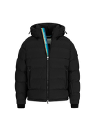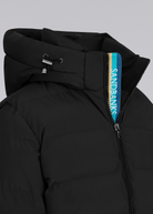 New for AW25 - the Sandbanks Banks Puffer Jacket with tri-colour wind placket. Made almost entirely from recycled plastic bottles with a black shell fabric, this jacket has high thermal retention and features a Sandbanks embroidered logo badges, large lower pocket/chest pocket details and detachable hood.