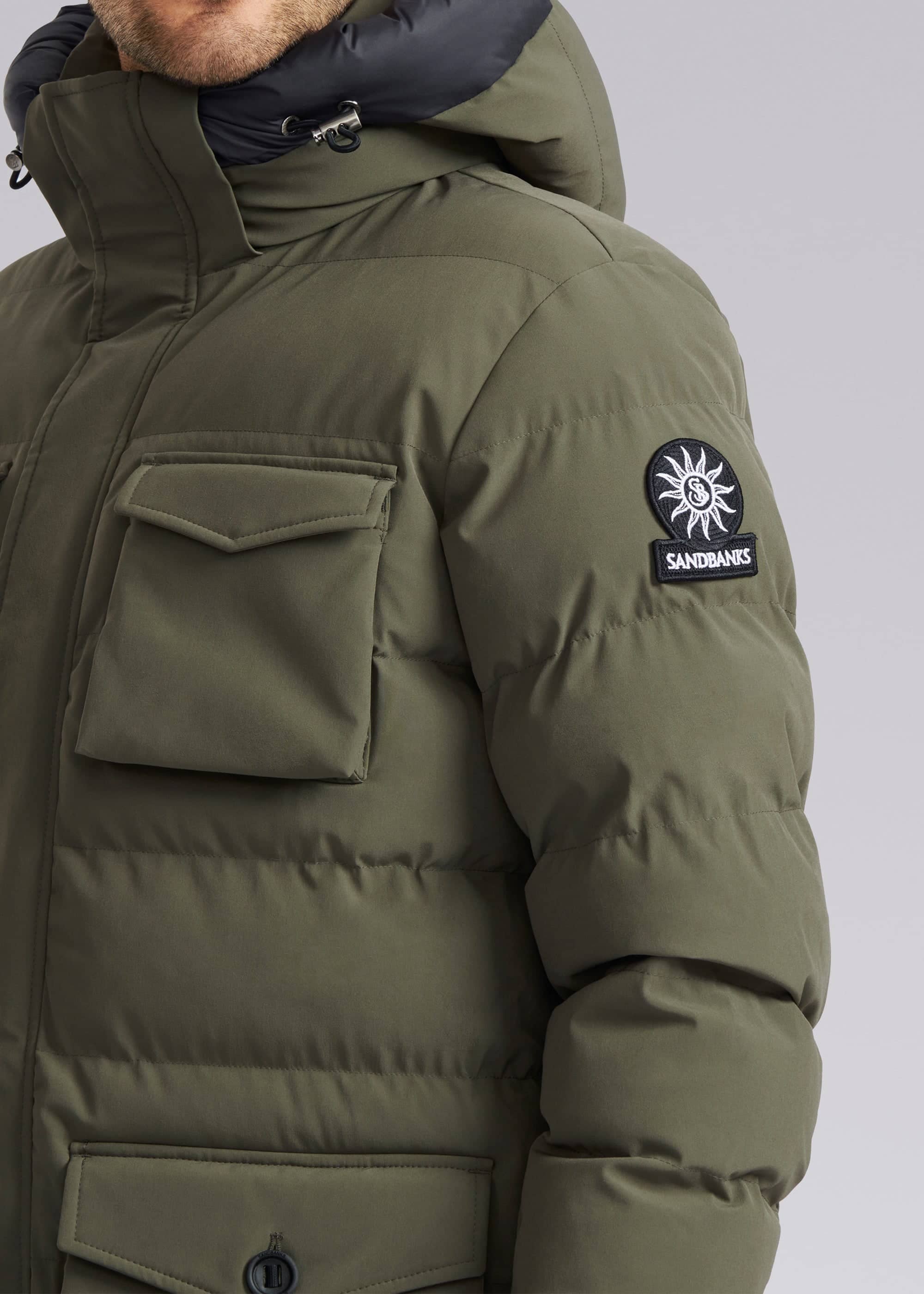 Sandbanks Branksome Long Puffer Jacket - Khaki