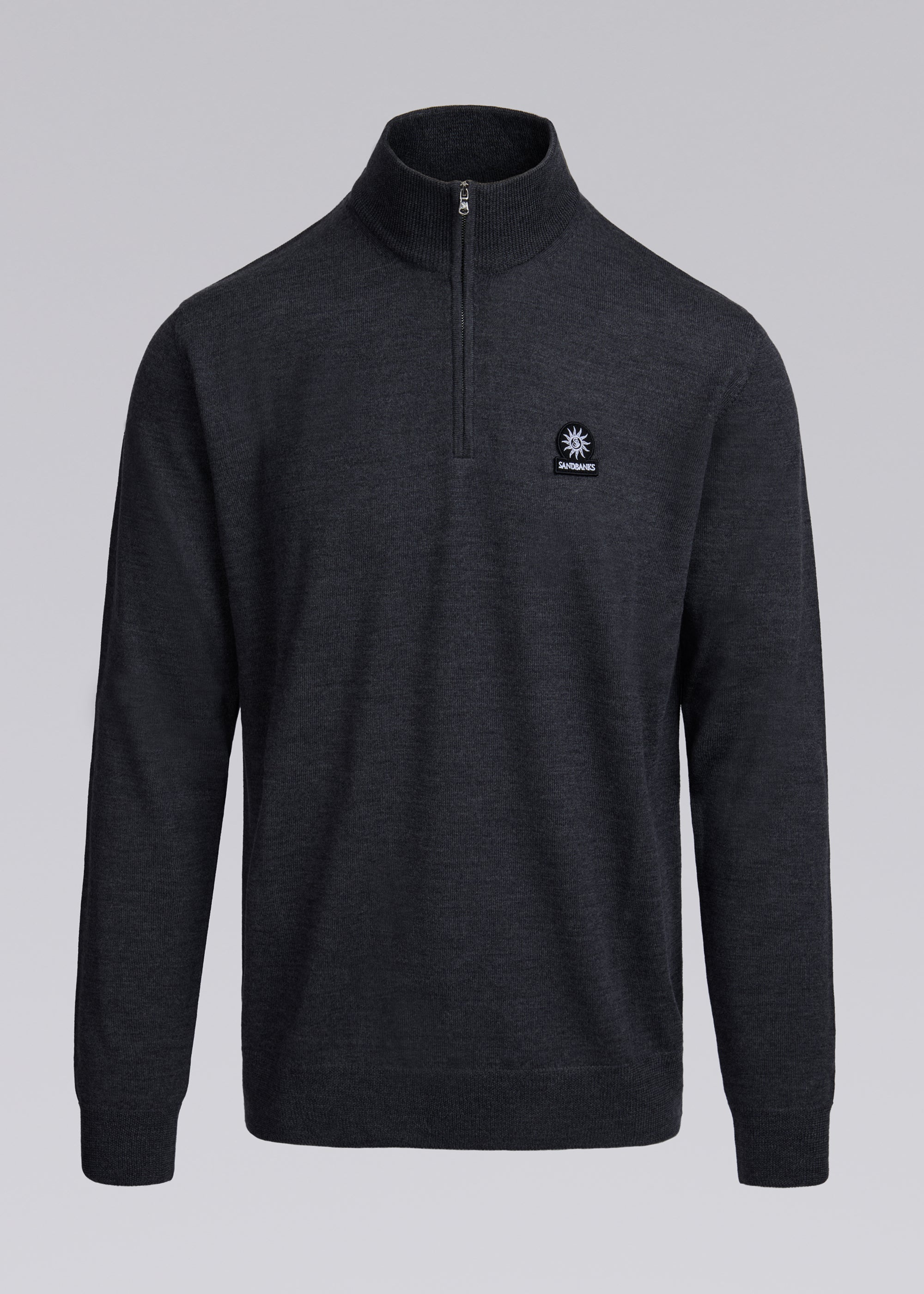 Sandbanks Merino Wool Quarter Zip Knitted Jumper - Anthracite