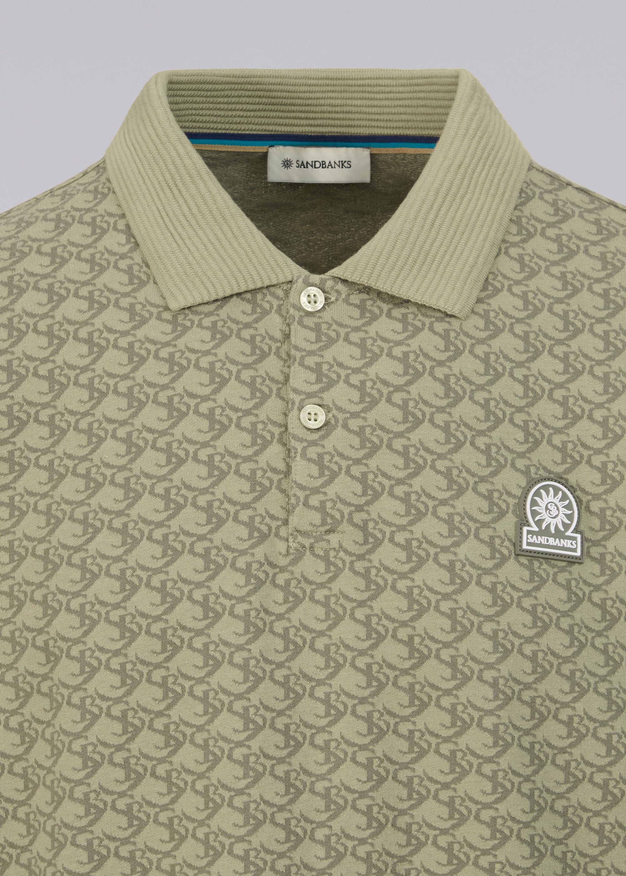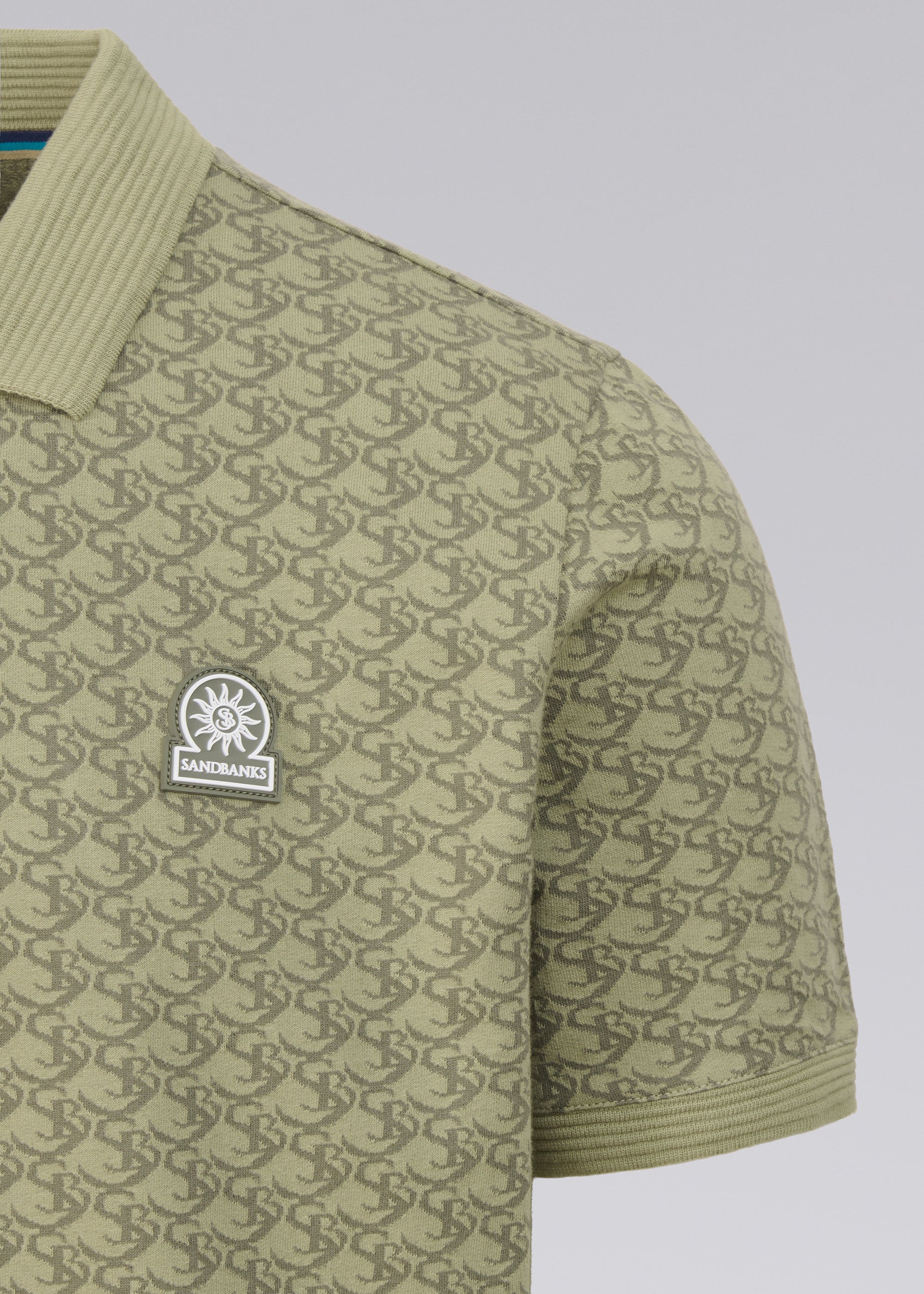 Sandbanks Jacquard Monogram Polo Shirt - Sage