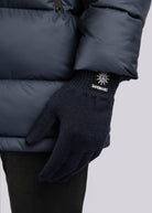 Sandbanks knitted accessories set in navy, including our badge logo beanie, scarf and gloves. These signature knitted accessories are made from a merino wool blend for luxury layering, and feature an embroidered badge logo.