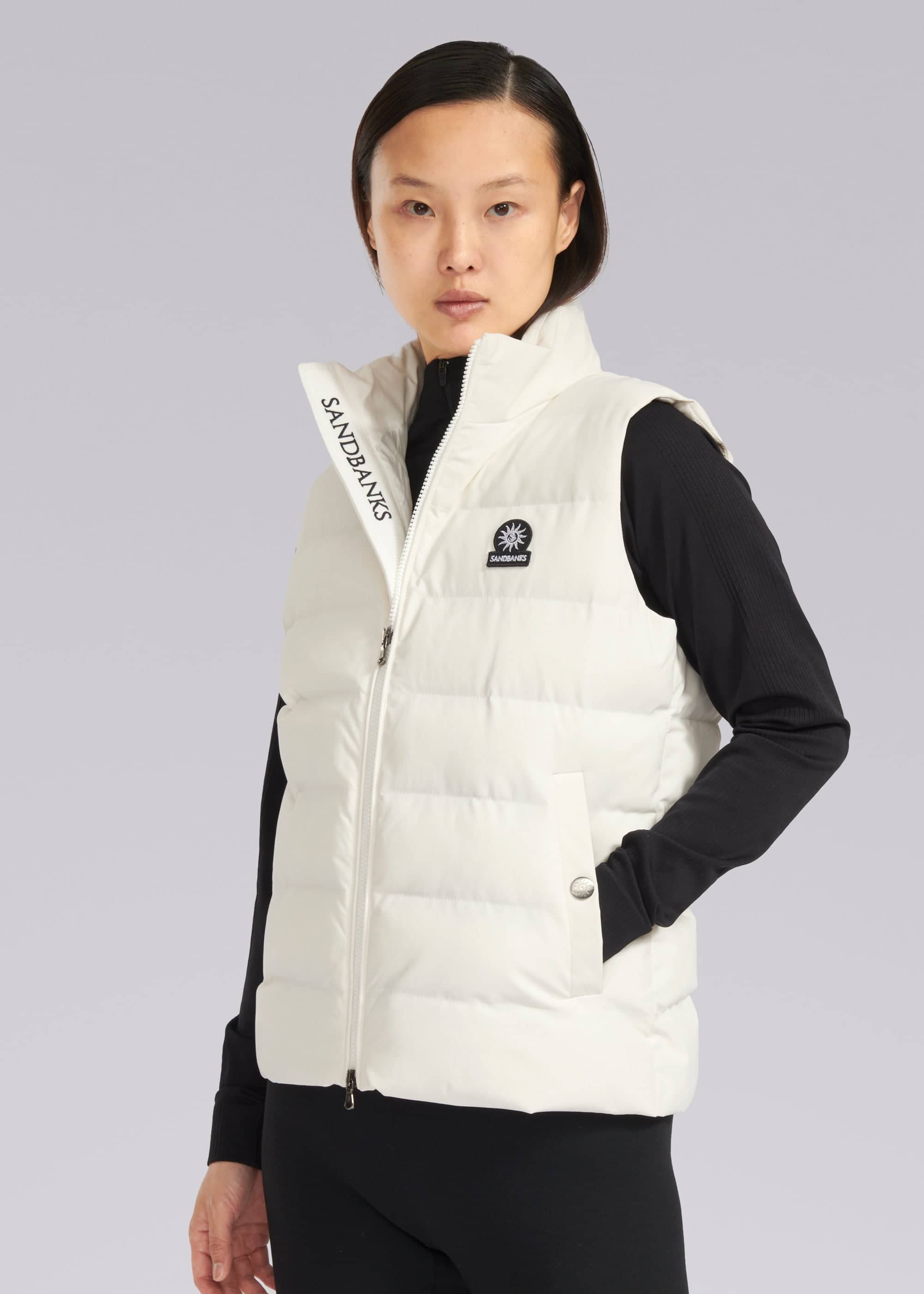 Sandbanks Marina gilet is made almost entirely from recycled plastic bottles. With a white outer shell fabric, this gilet has high thermal retention, and features statement Sandbanks embroidery details.