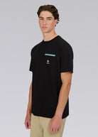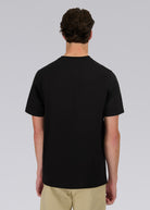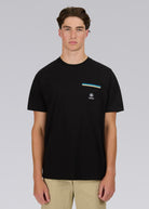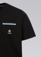 Sandbanks men's badge logo pocket t-shirt in black, made from mercerised 100% organic cotton for a silky and luxurious feel. This relaxed fitting crew neck t-shirt features statement pocket with embroidered badge logo and tri-colour rib binding pocket.