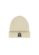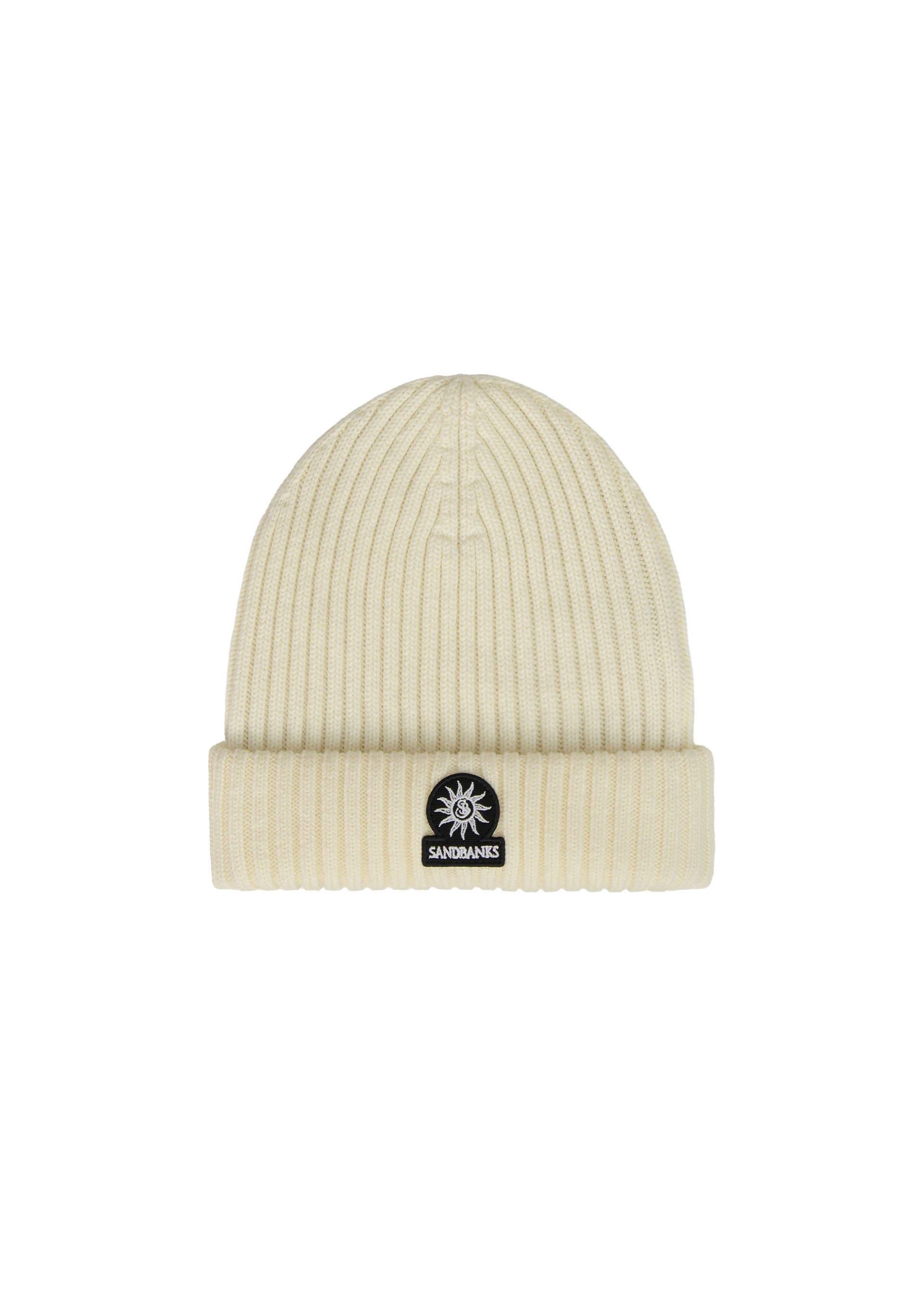 Sandbanks knitted badge logo beanie in stone, made from 100% Merino wool . Merino wool is known for its softness, warmth, and moisture-wicking properties, making it the perfect material for a comfortable and functional beanie.