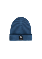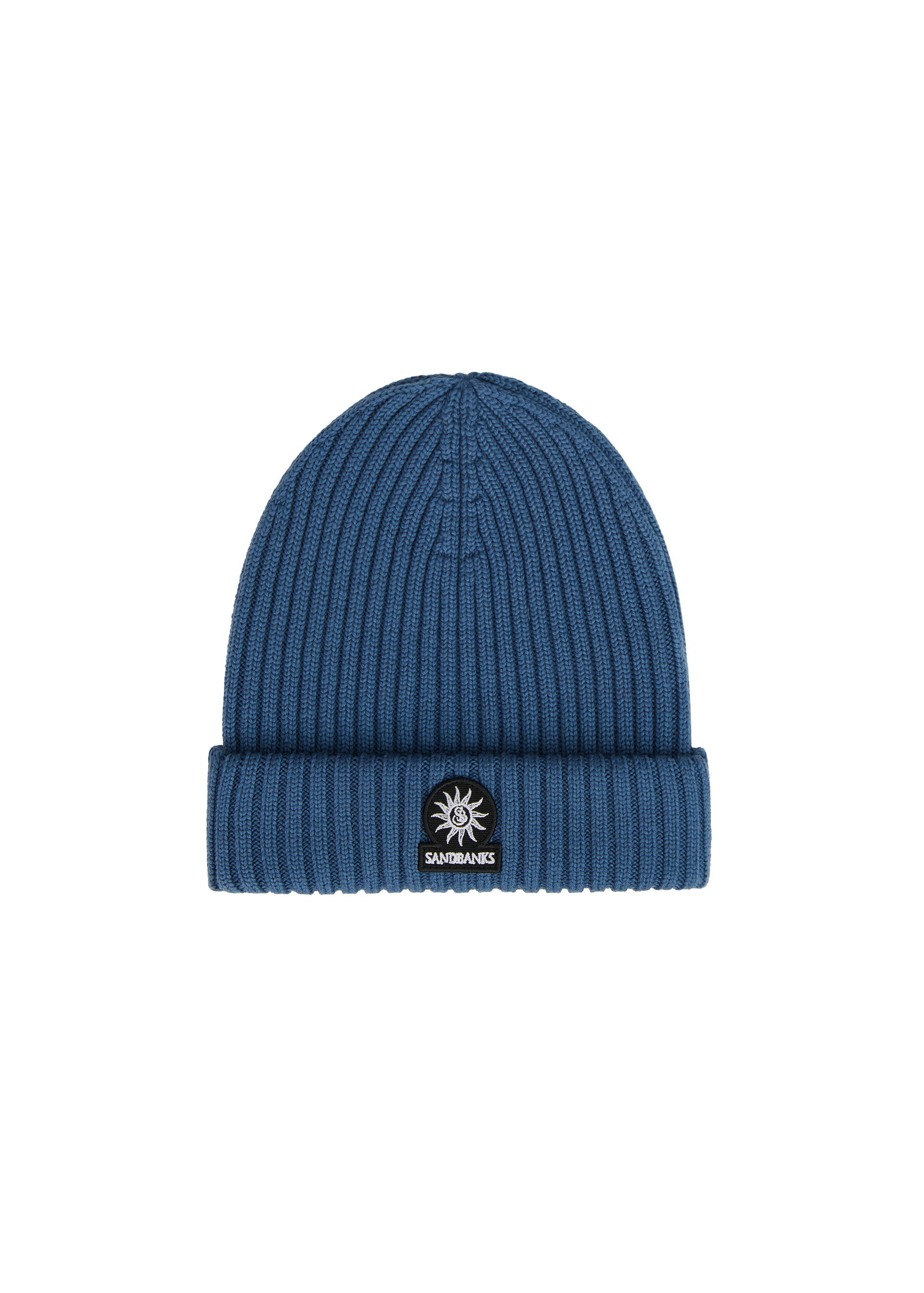 Sandbanks knitted badge logo beanie in teal, made from 100% Merino wool . Merino wool is known for its softness, warmth, and moisture-wicking properties, making it the perfect material for a comfortable and functional beanie.