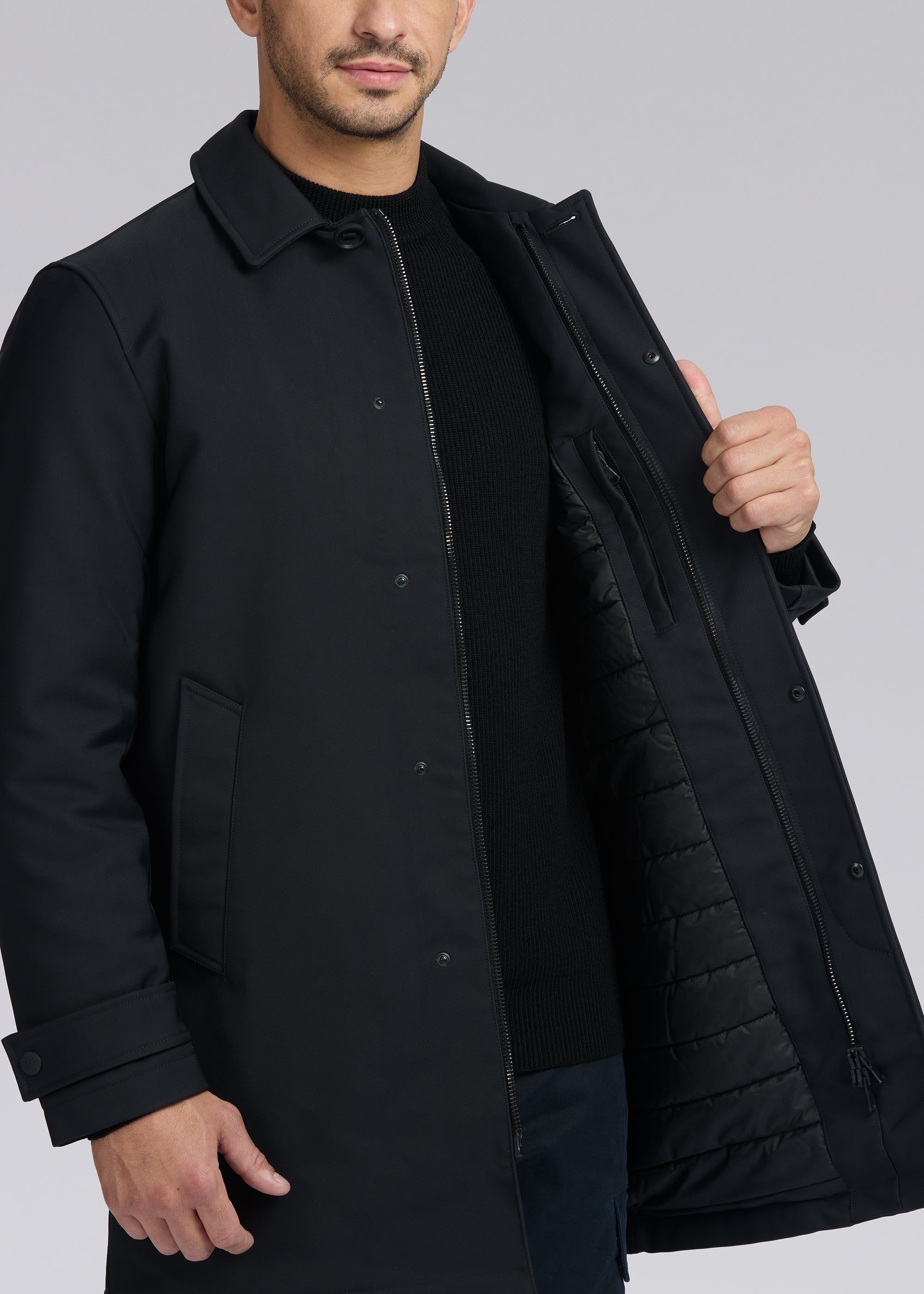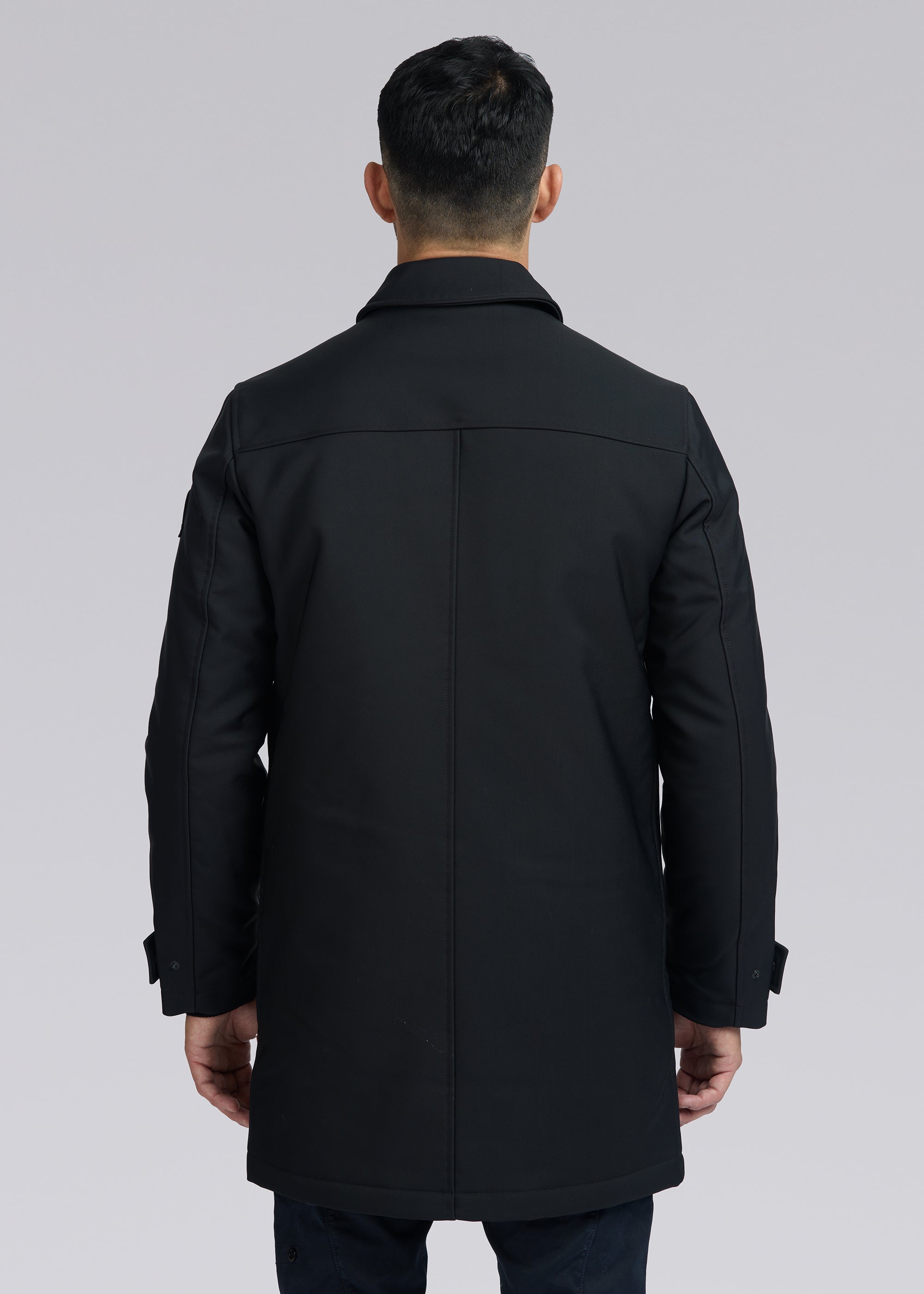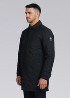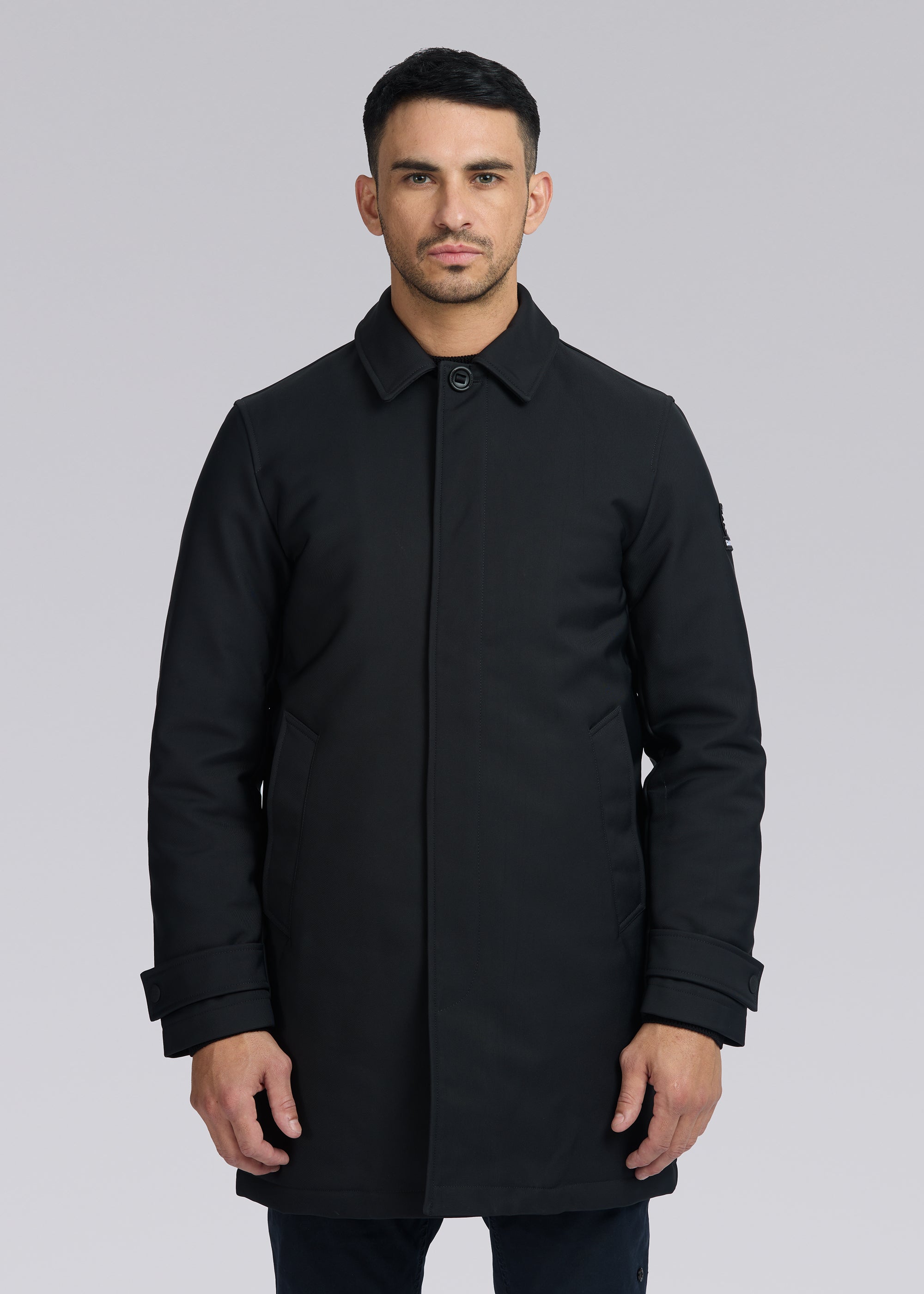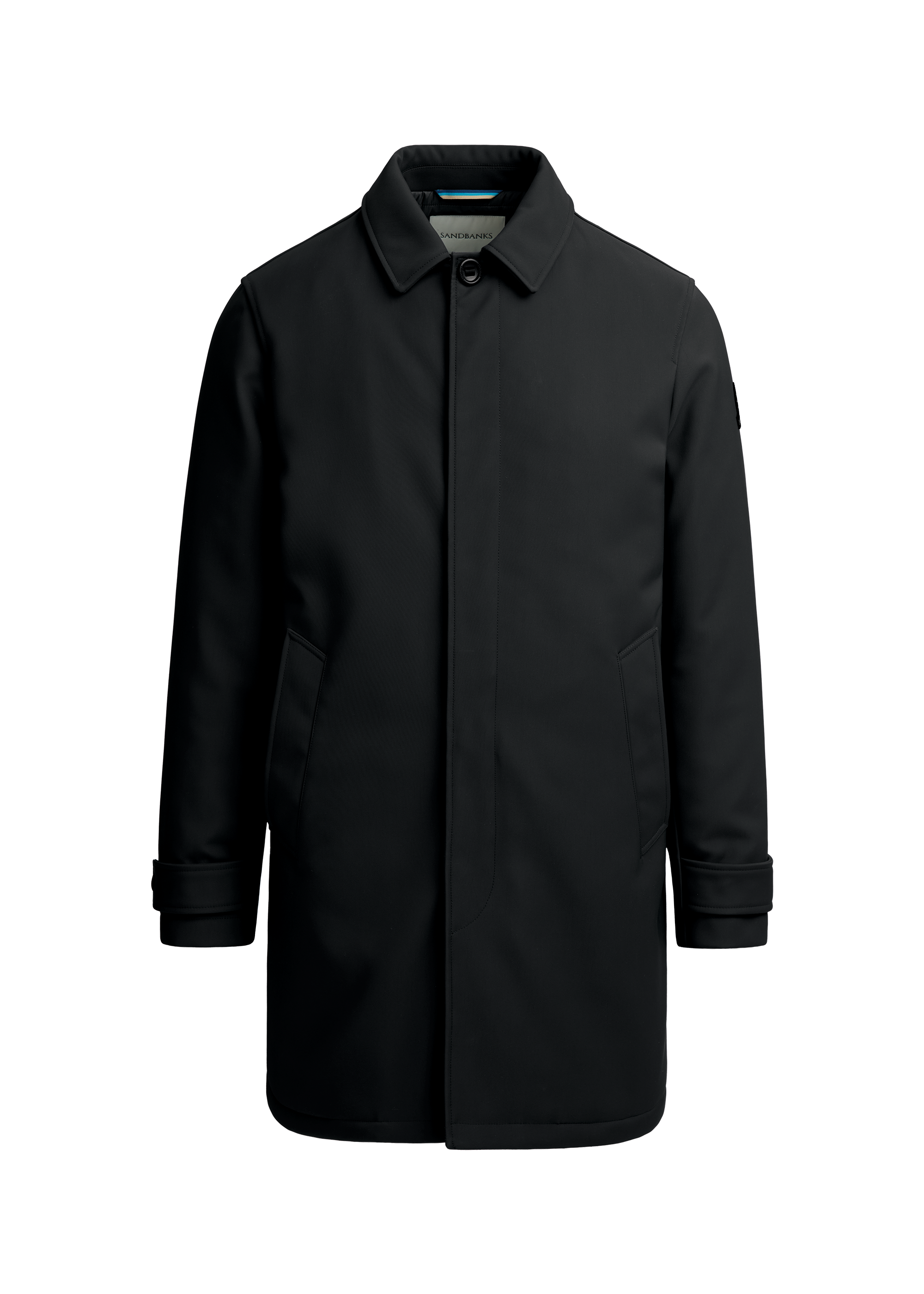 The Sandbanks Quilted Mac jacket is made from a luxurious Italian high density fabric with a rubberised touch in black. This jacket is filled with eco wadding made from recycled plastics featuring Lampo Italian black metal central zip and rubberised engraved Sandbanks buttons.