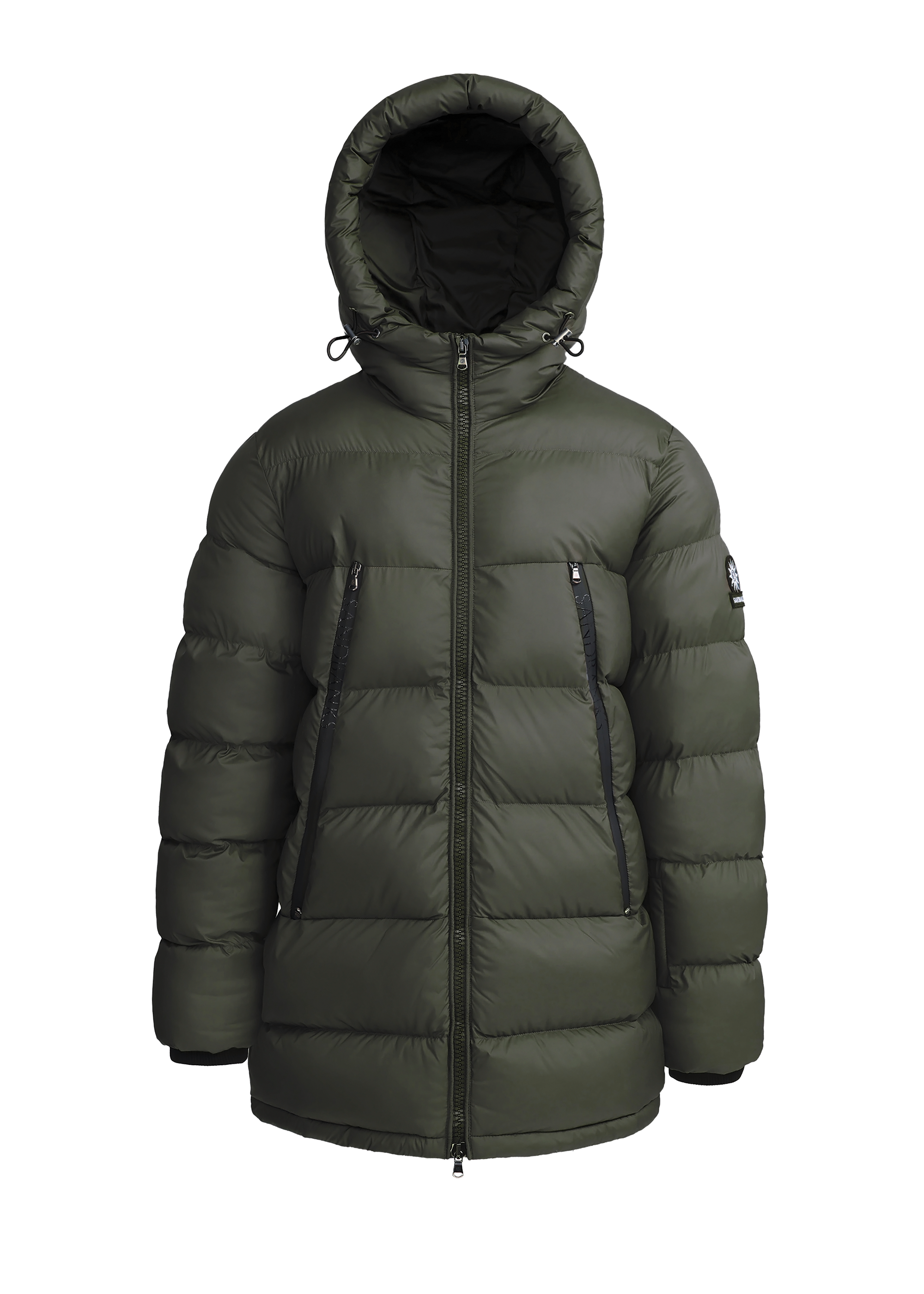 Sandbanks Ravine mid puffer is made almost entirely from recycled plastic bottles. With a khaki shell fabric, this jacket has high thermal retention and features; Lampo silicone zips with Sandbanks print and embroidered badges.