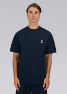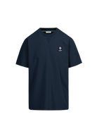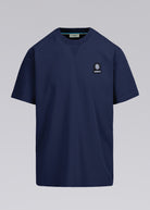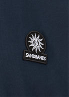 Sandbanks men's double jersey collegiate t-shirt in navy, made from mercerised cotton for a silky and luxurious feel. This relaxed fit crew neck t-shirt features an embroidered badge logo on the chest and tri-colour back neck binding.