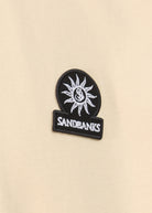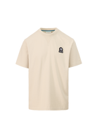 Sandbanks men's double jersey collegiate t-shirt in stone, made from mercerised cotton for a silky and luxurious feel. This relaxed fit crew neck t-shirt features an embroidered badge logo on the chest and tri-colour back neck binding.