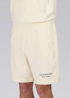 Sandbanks Riviera Collection short in natural, made from 100% bci cotton. This sweat short features statement Sandbanks Riviera Collection print and tonal rubber logo sleeve badge.