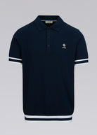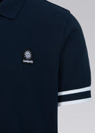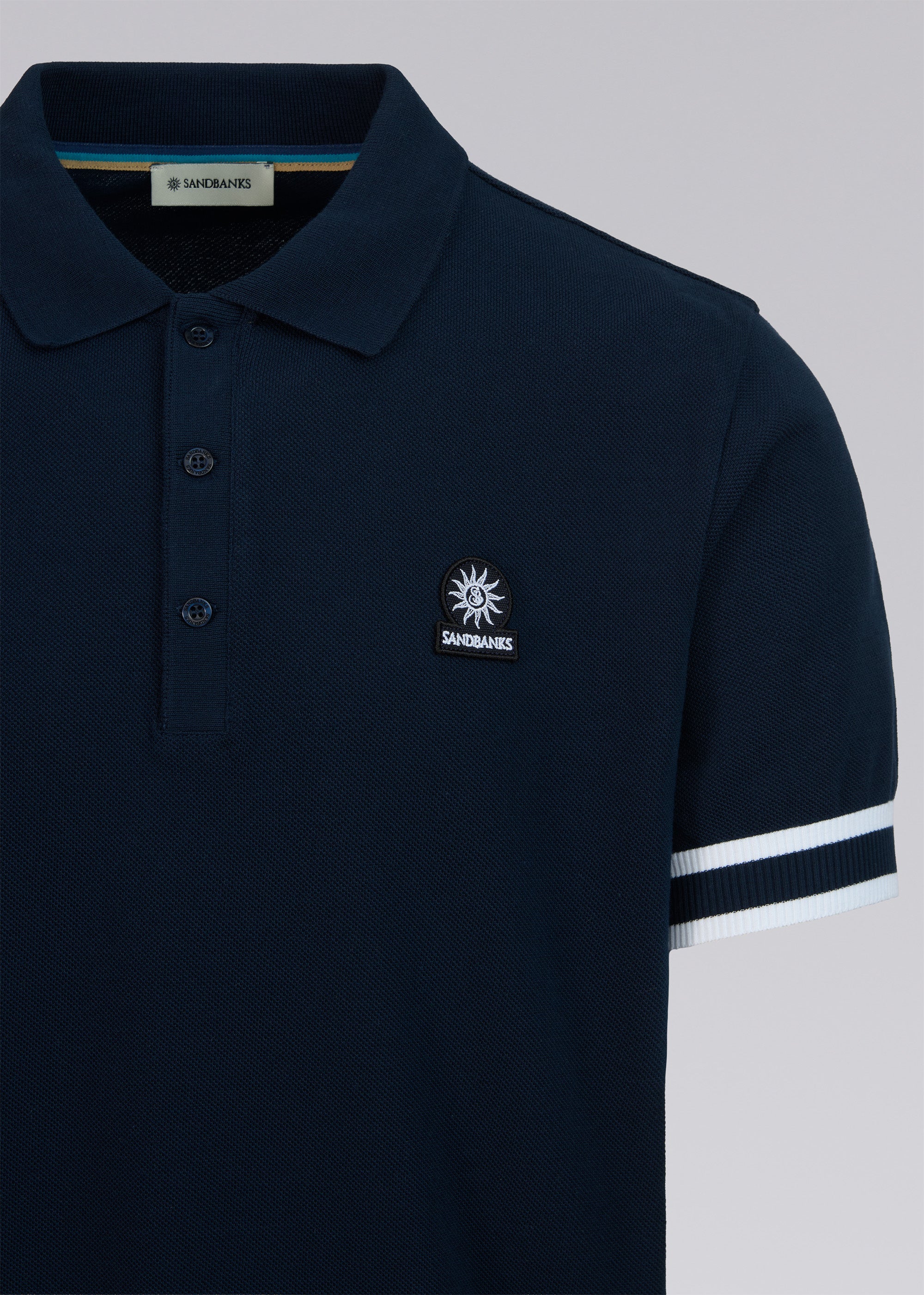 This navy Sandbanks Stripe Hem Pique Polo Shirt is a sophisticated choice, featuring a embroidered badge logo on the chest, a bold contrasting stripe rib on the cuff and waist band and statement 3 button placket with engraved pearlescent buttons.