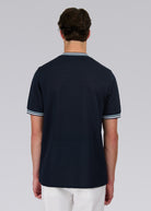 Sandbanks Jacquard T-Shirt with Striped Neck and Cuffs - Navy
