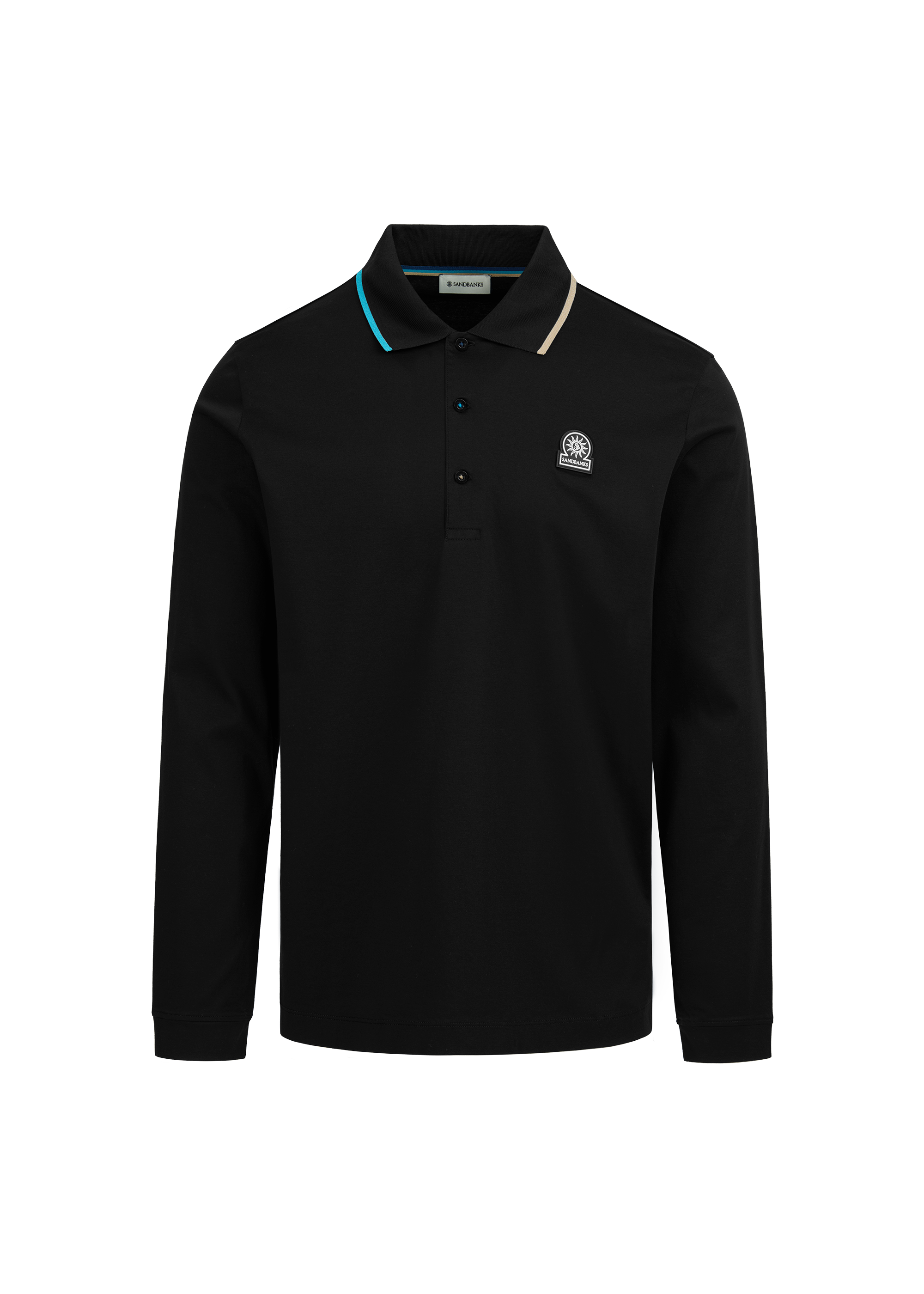Sandbanks Tipped Collar Long Sleeve PoloBlack