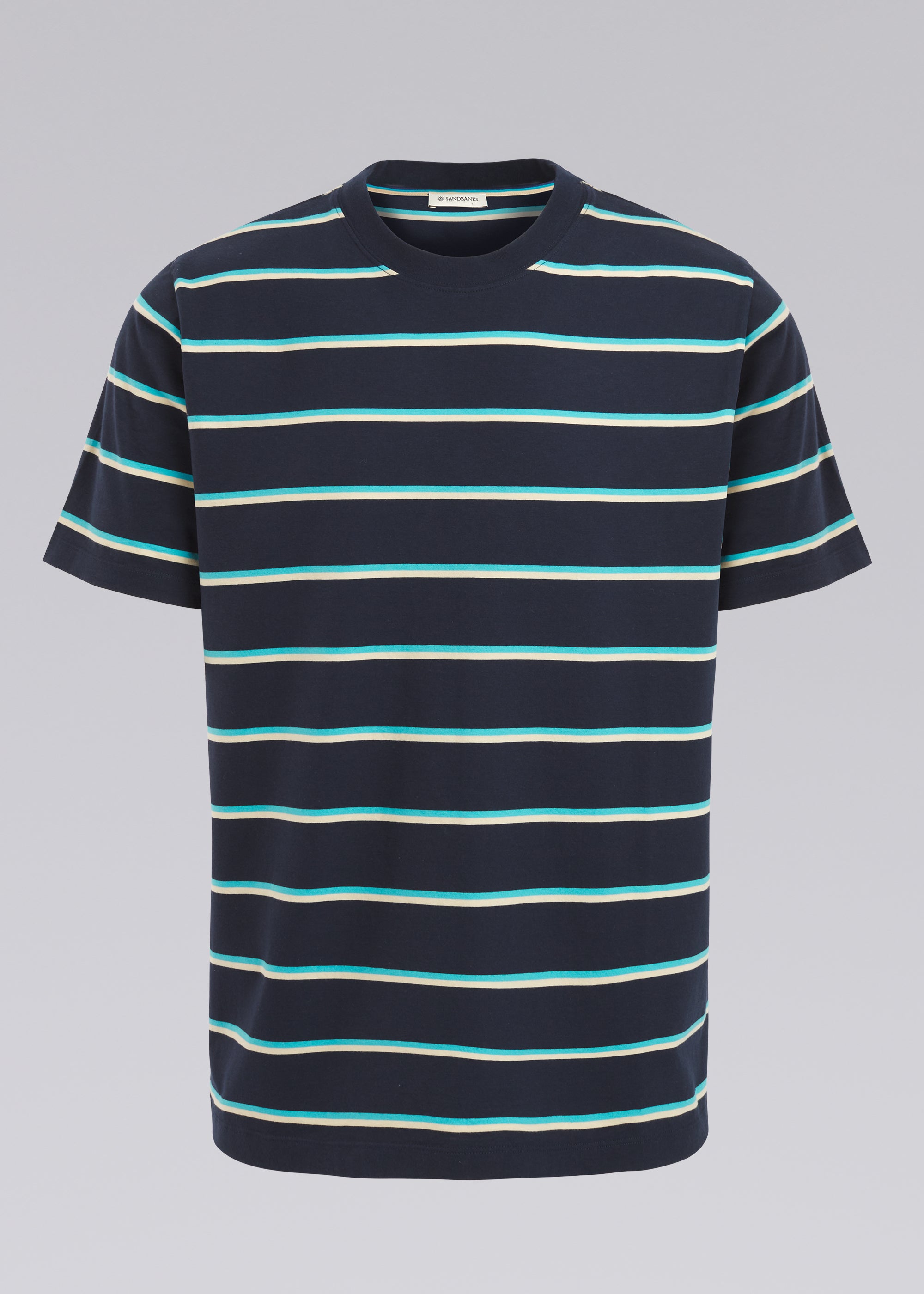 Sandbanks Tri-Colour Mini Stripe T-ShirtNavy