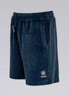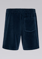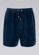 Sandbanks Towelling Shorts in navy crafted from 100% BCI Cotton for superior quality and comfort. Finished with an embroidered badge logo complemented by engraved cord ends and eyelets for refined functionality.