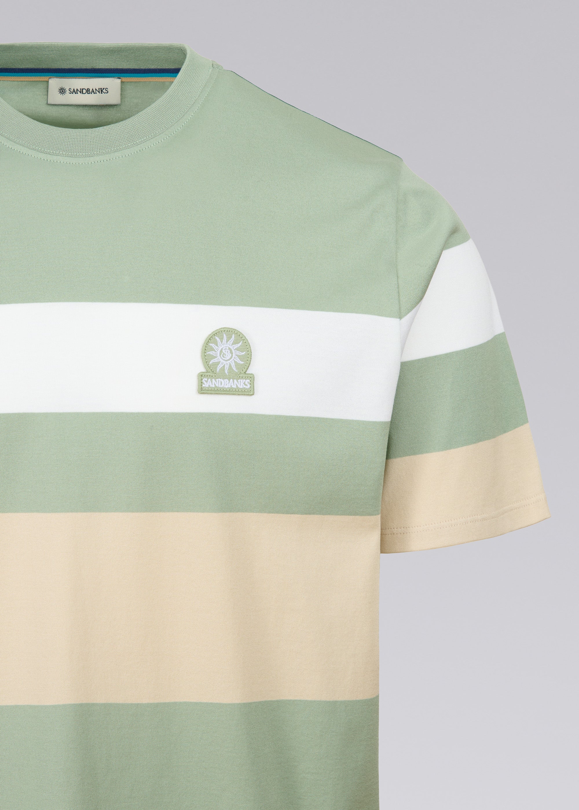 Sandbanks Mercerised Stripe T-Shirt - Sage