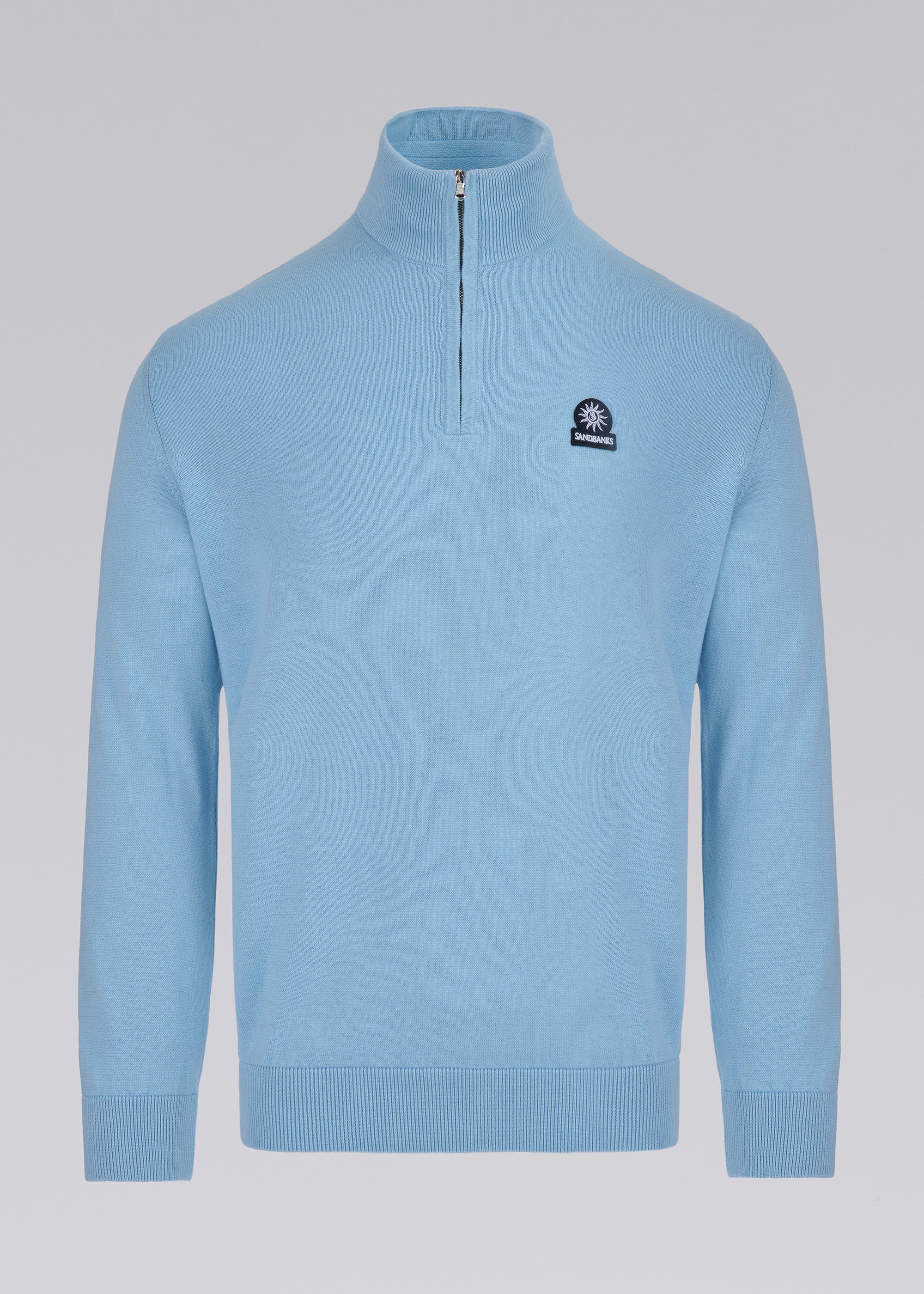 Sandbanks Merino Wool Quarter Zip Jumper - Crystal Blue