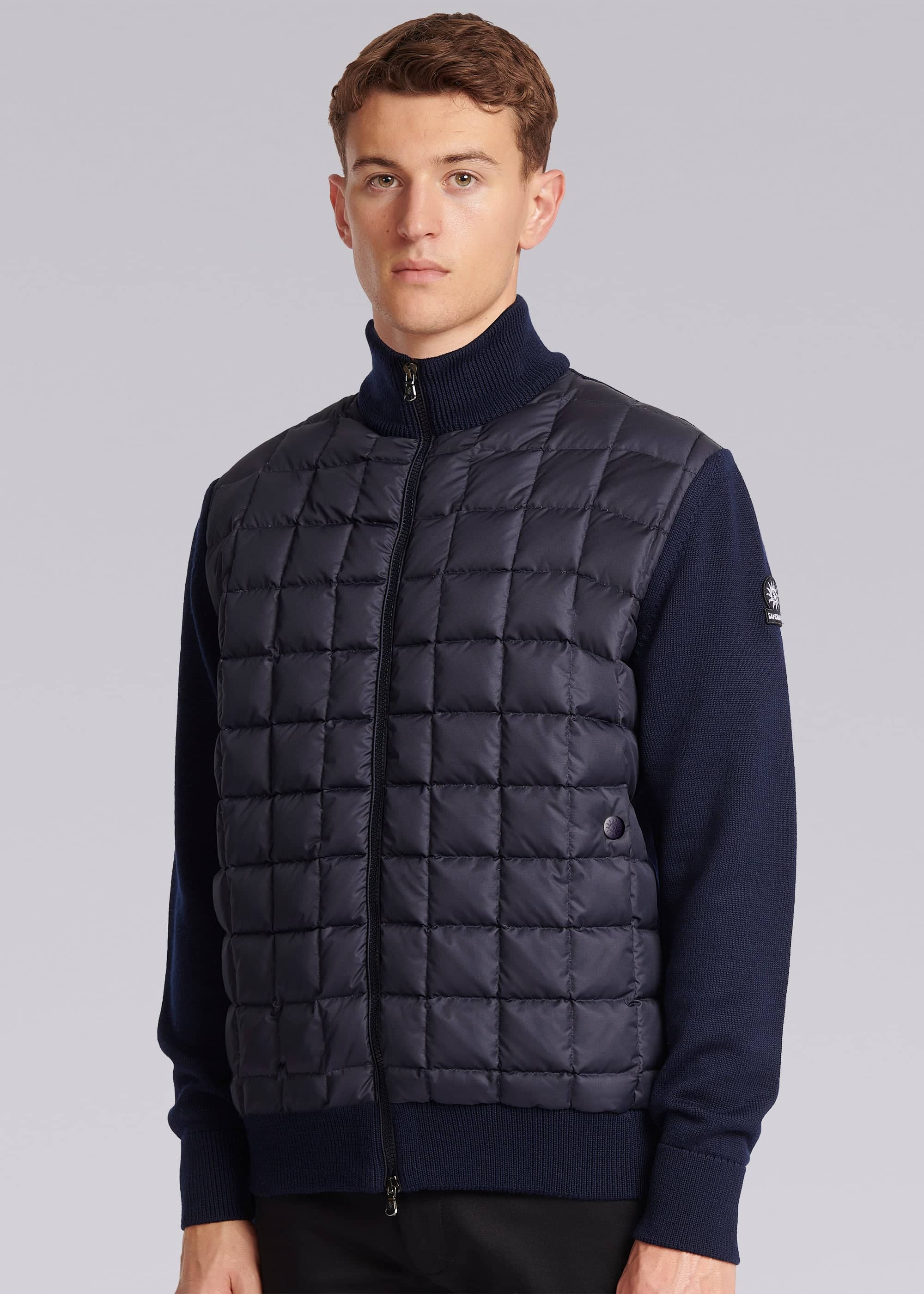 Sandbanks Grid Hybrid Funnel Neck Knit Jacket - Navy