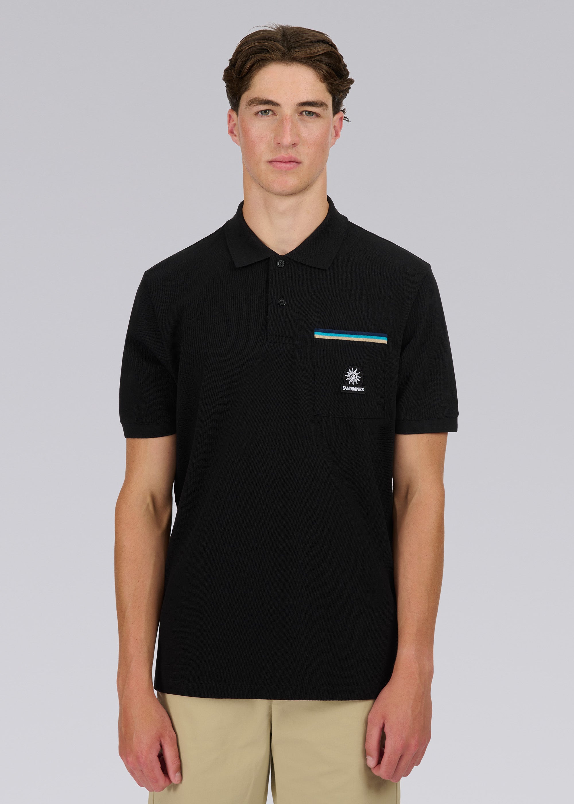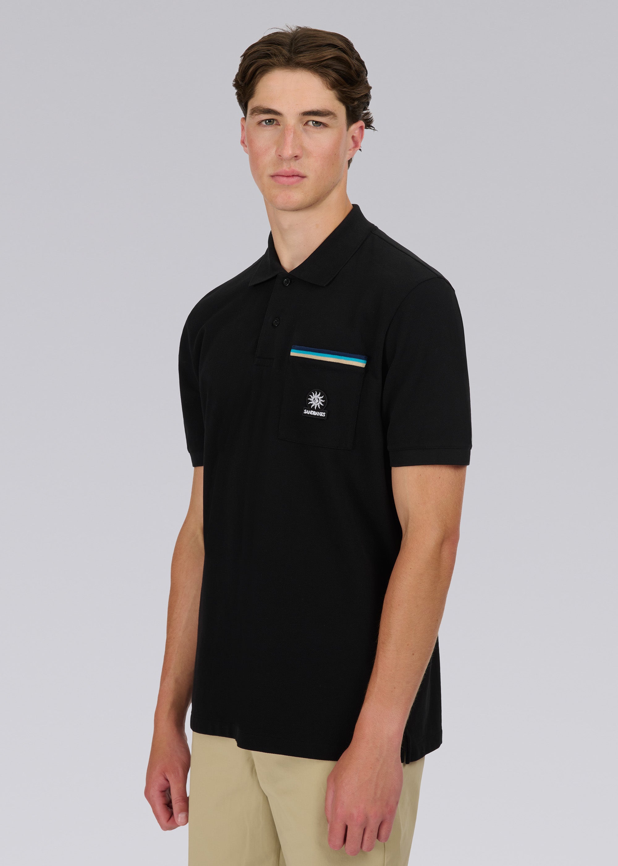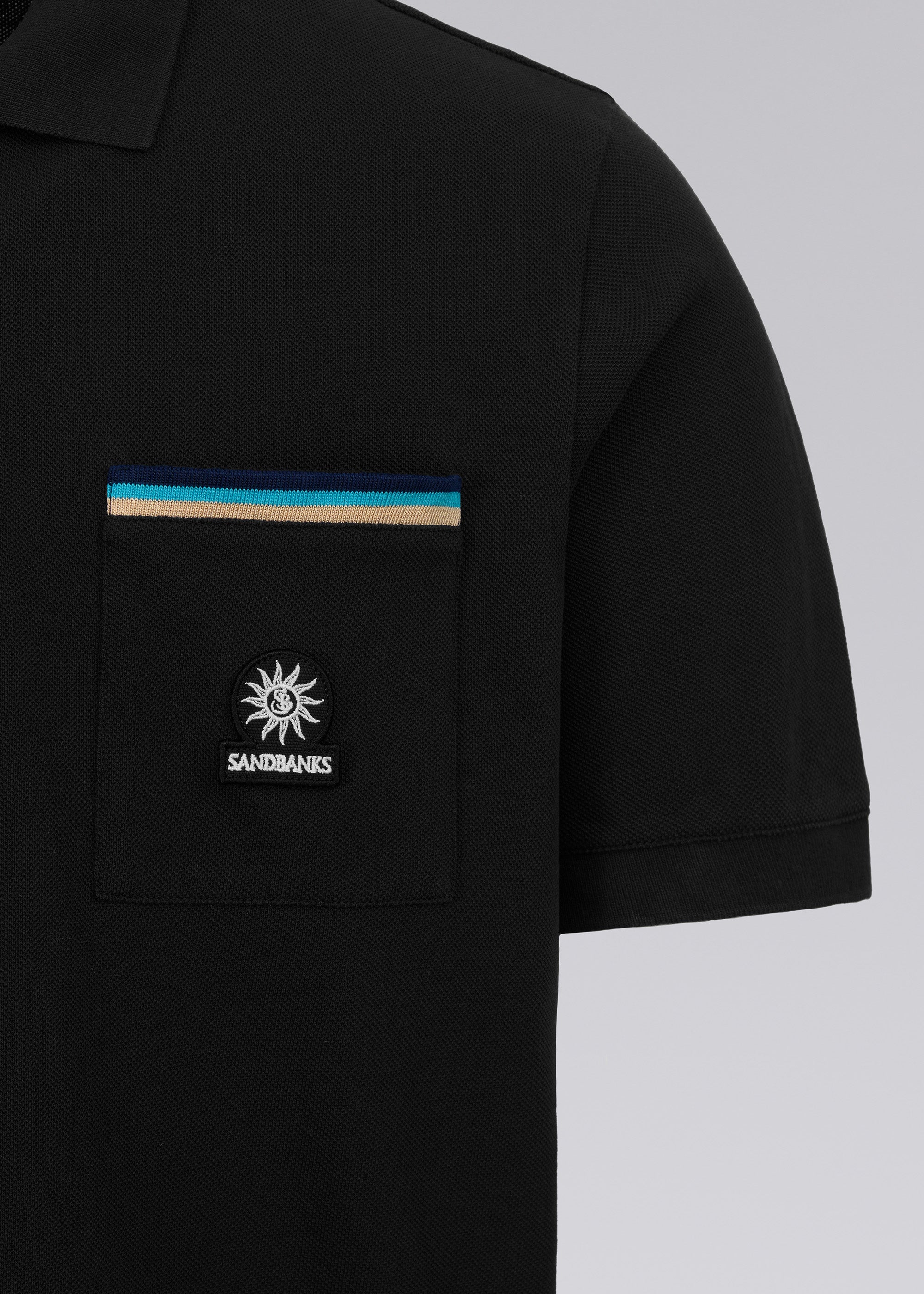 Sandbanks Tri-Colour Pocket Polo Shirt - Black