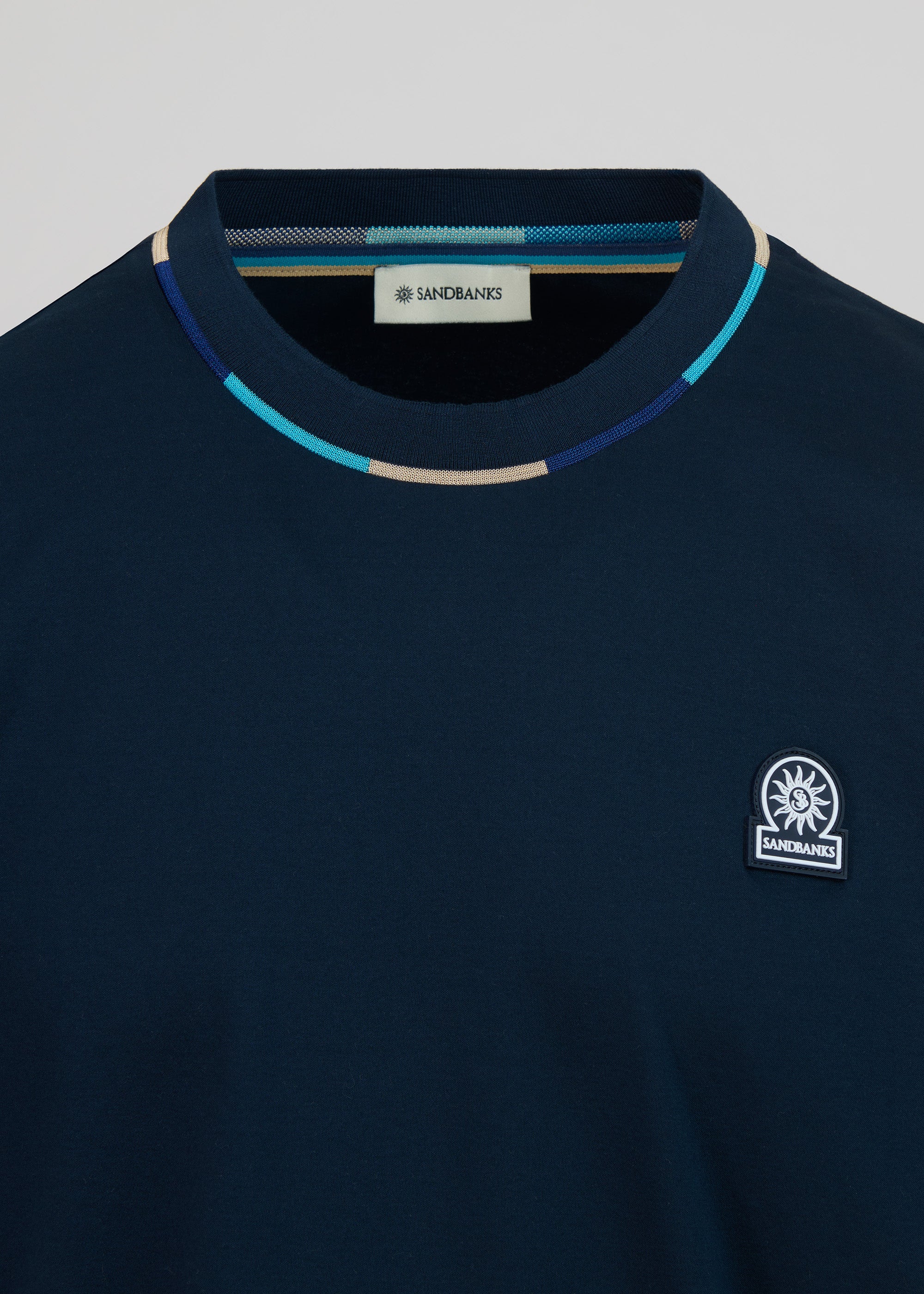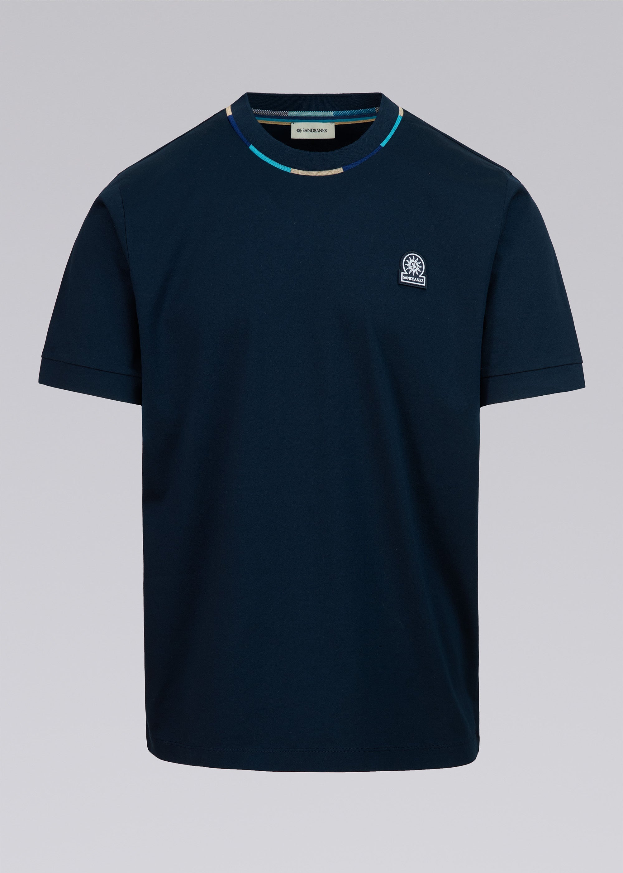 Sandbanks Tri-colour Neck T-Shirt - Navy