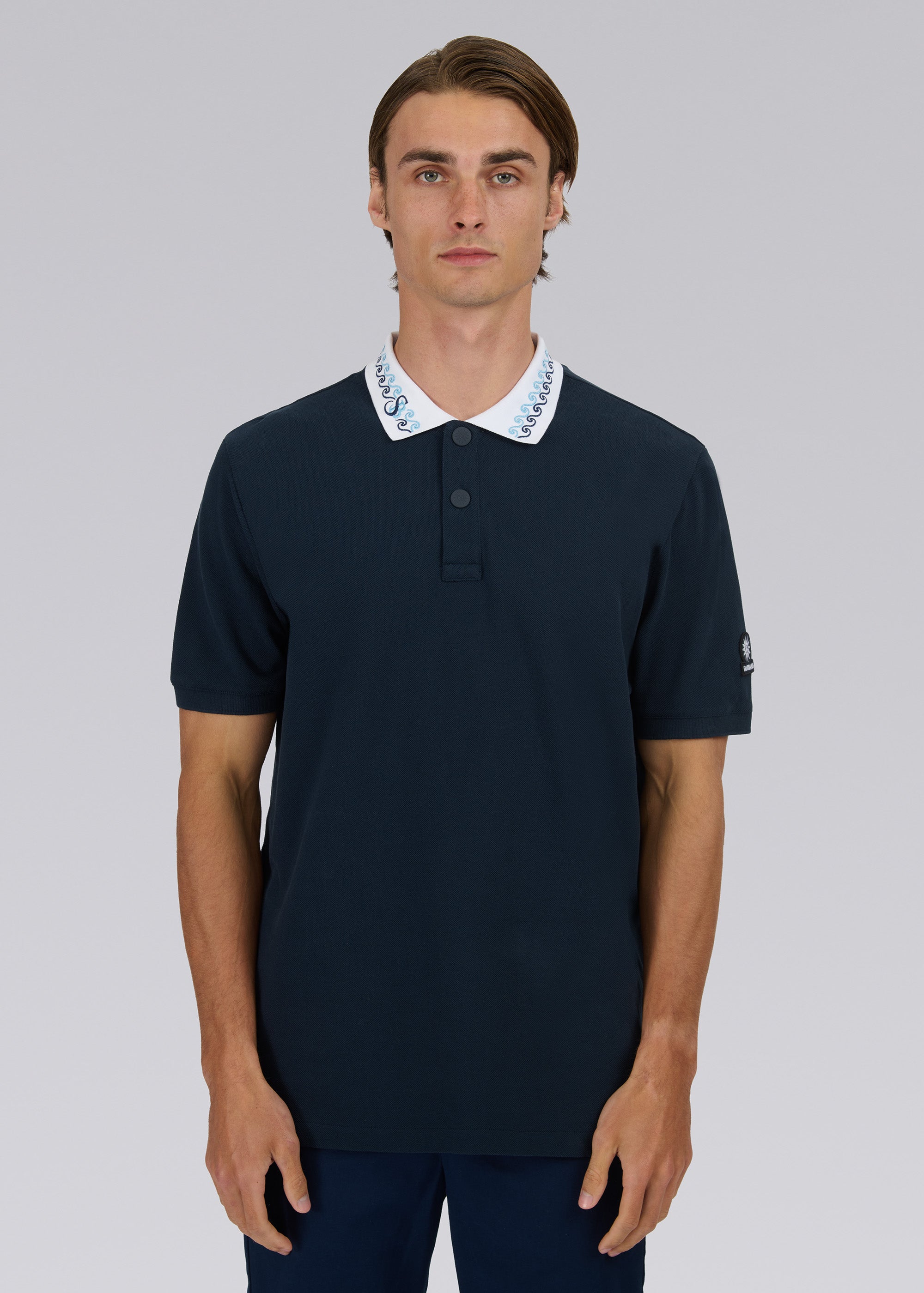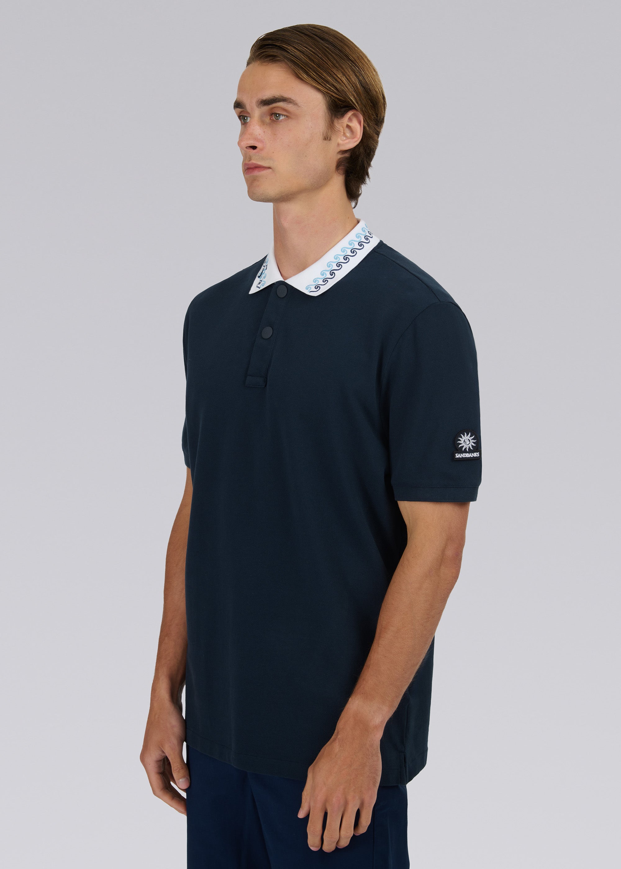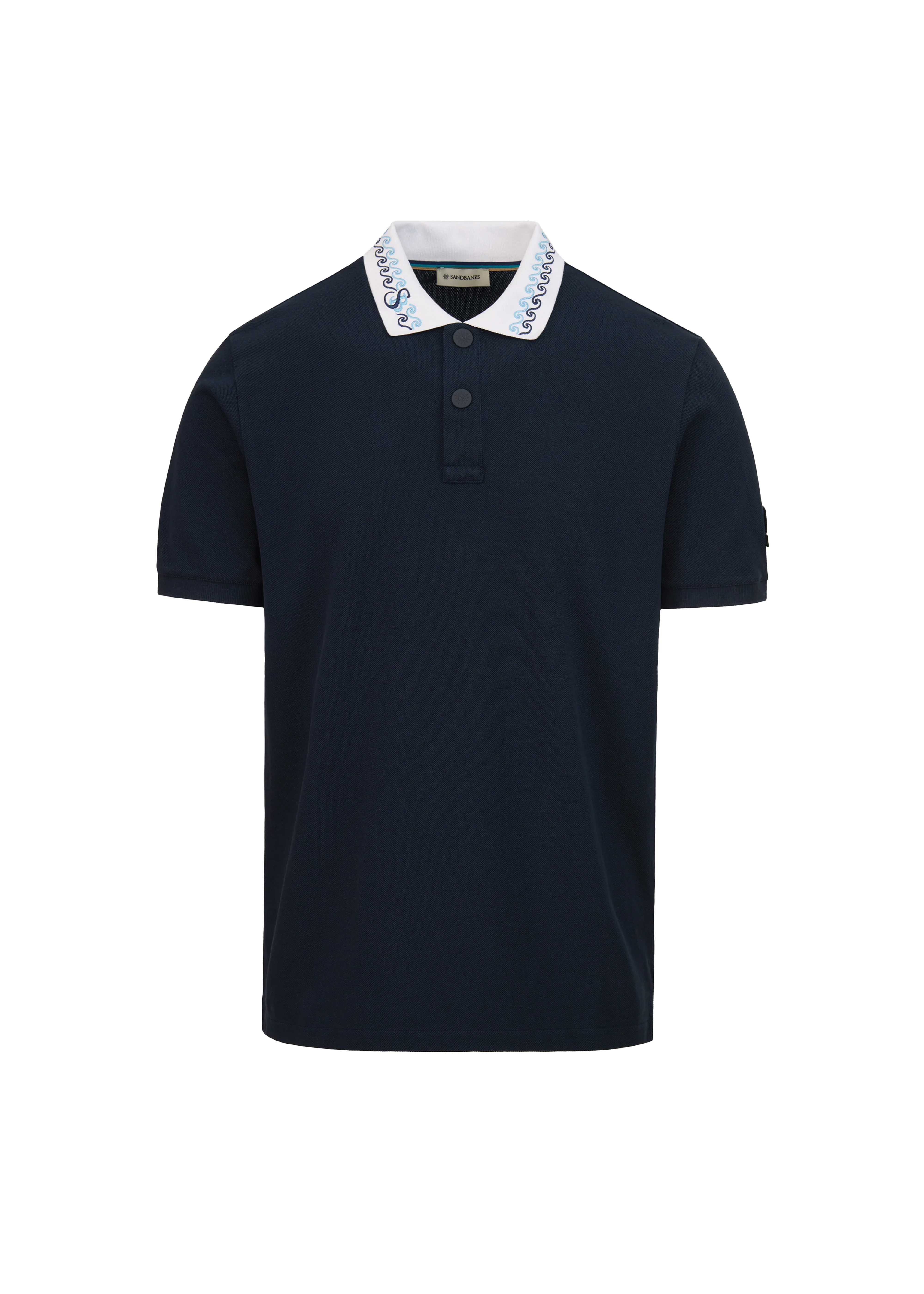 Sandbanks Embroidered Collar Pique Polo Shirt - Navy
