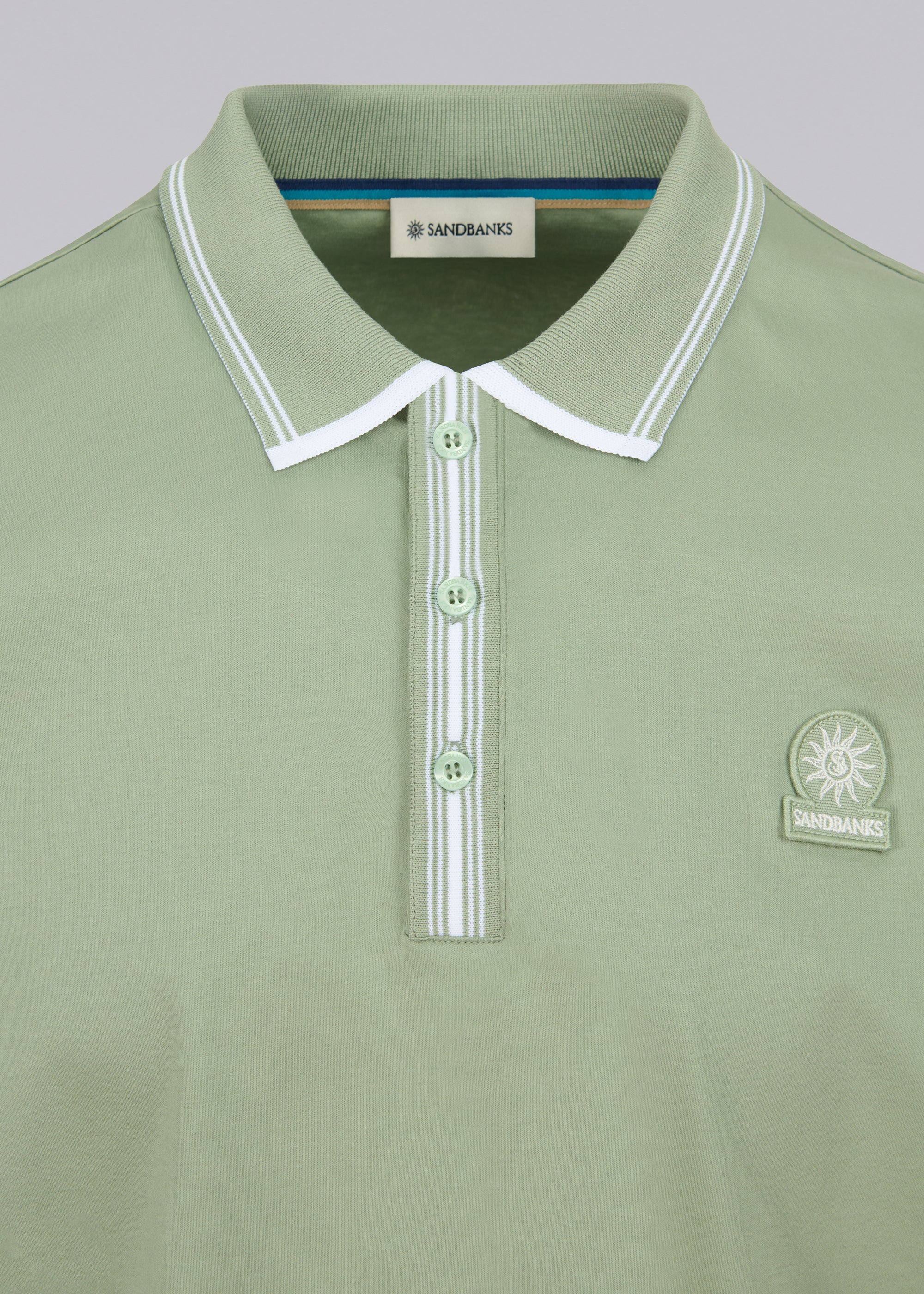 Sandbanks Contrast Stripe Polo Shirt - Sage