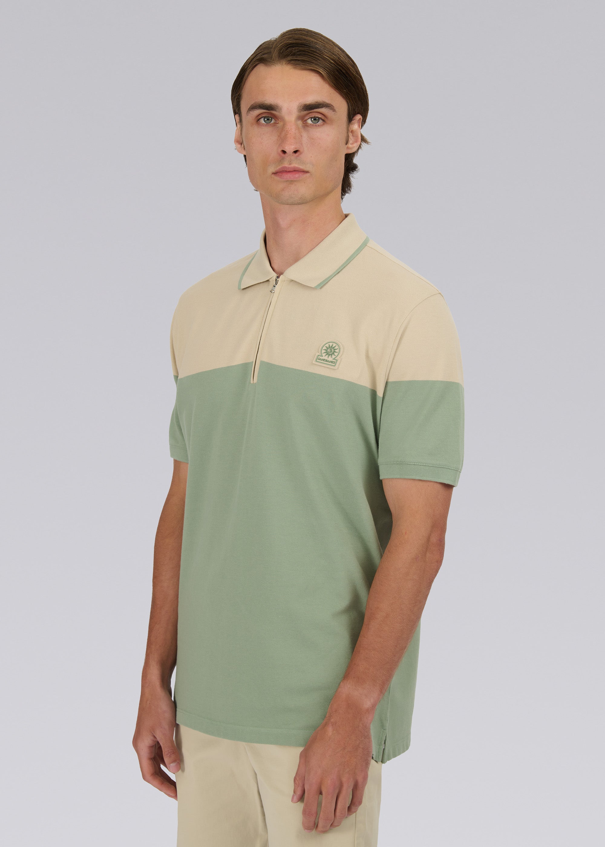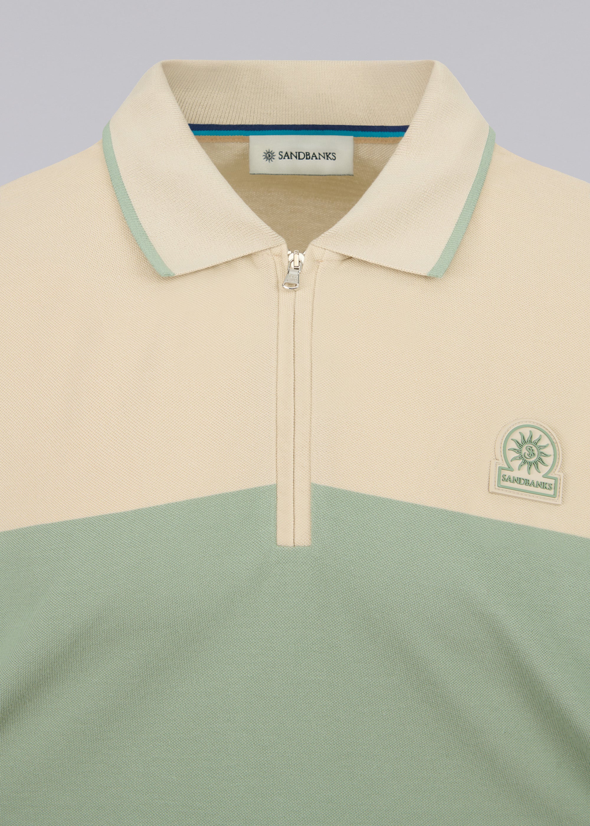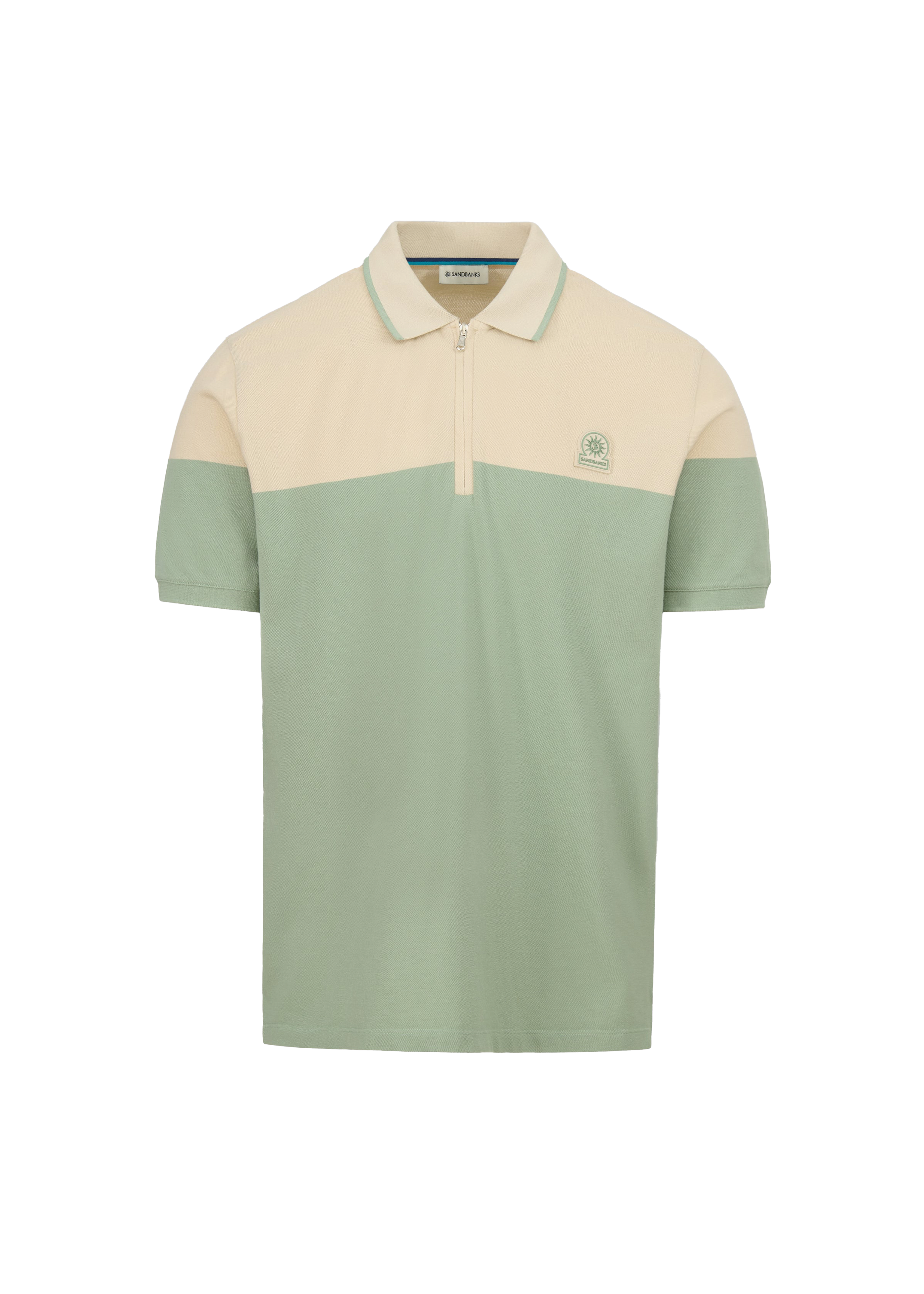 Sandbanks Colour Block Zip Polo Shirt - Sage