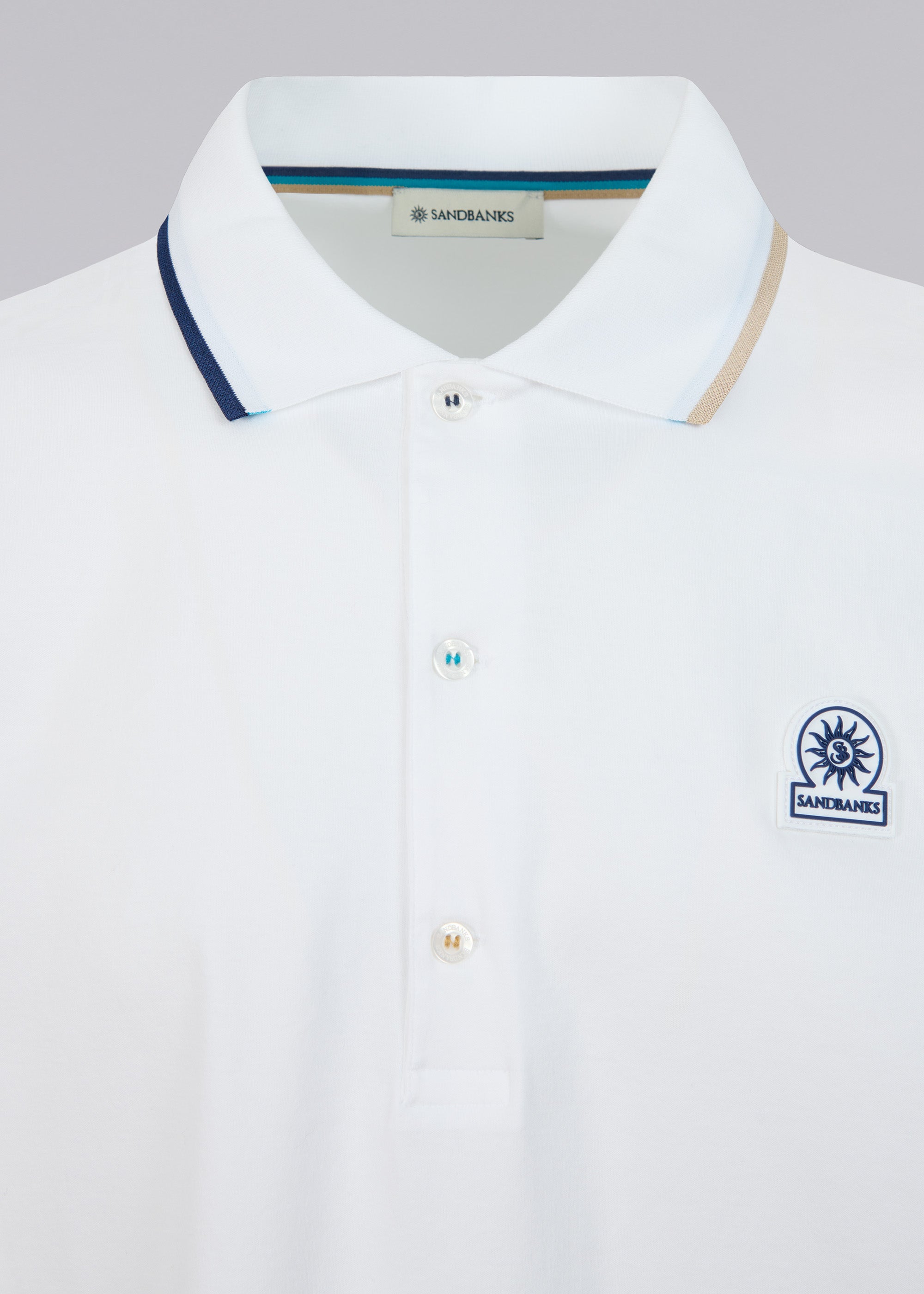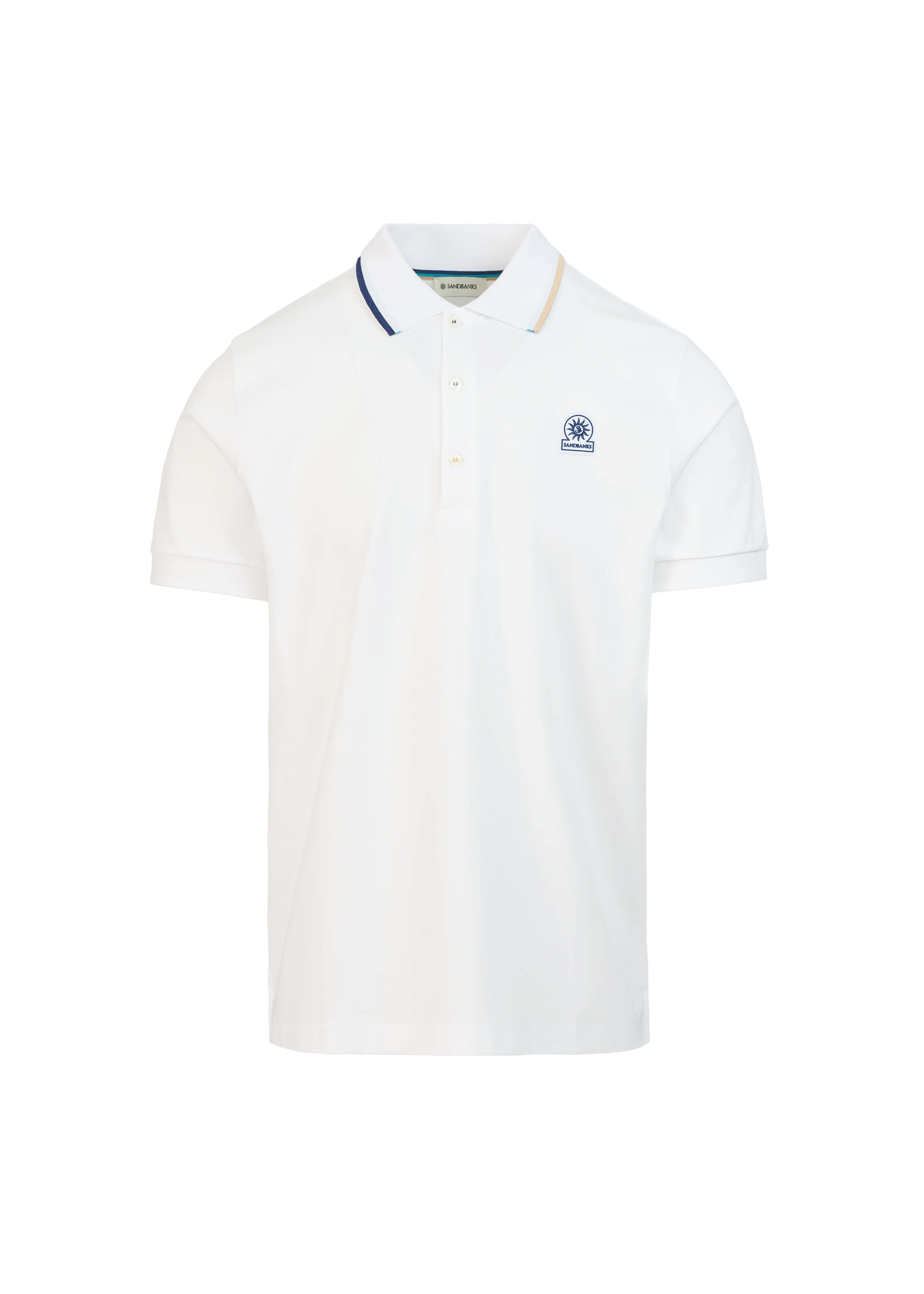 Sandbanks Tri-Colour Tipped 3-Button Polo Shirt - White