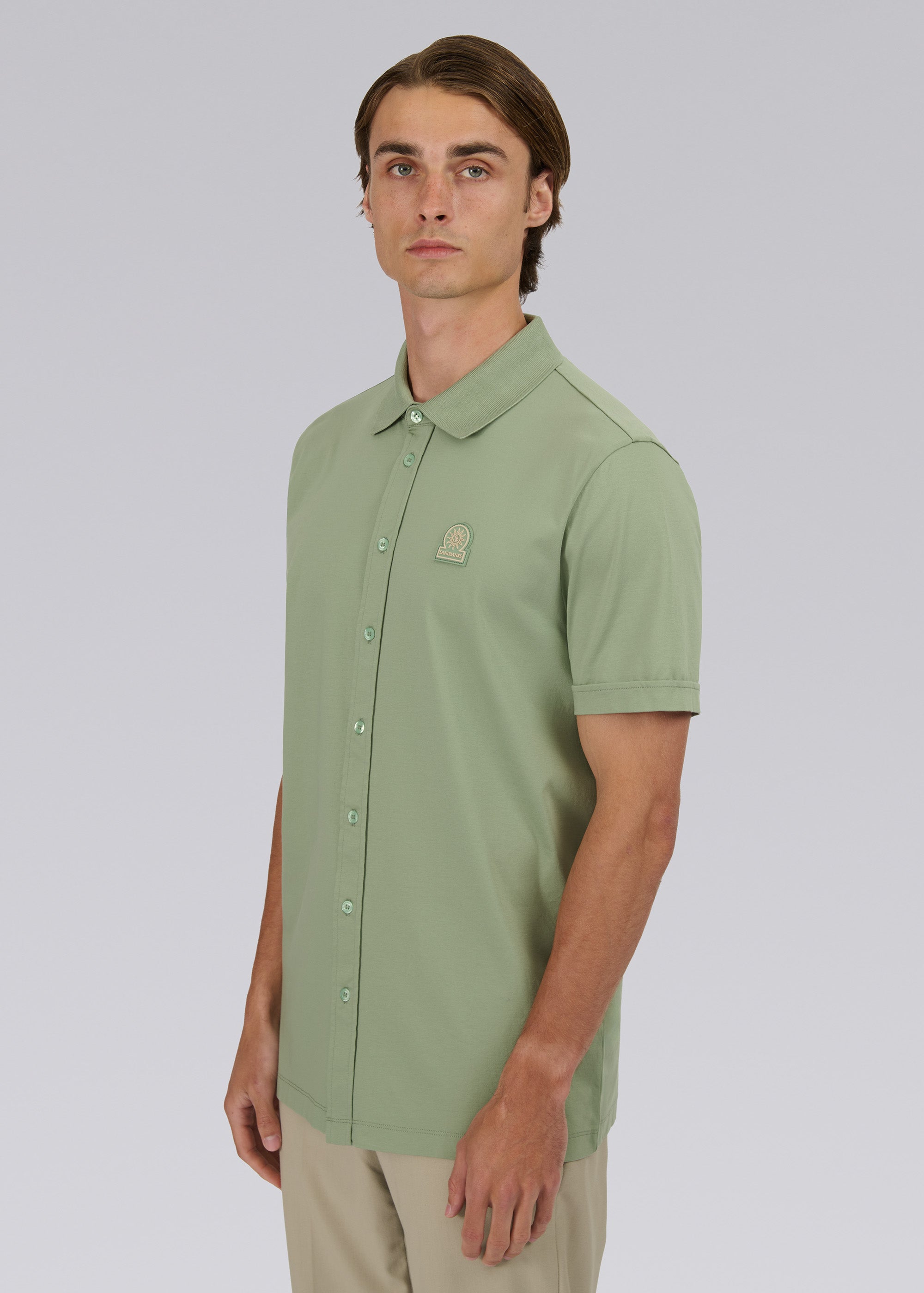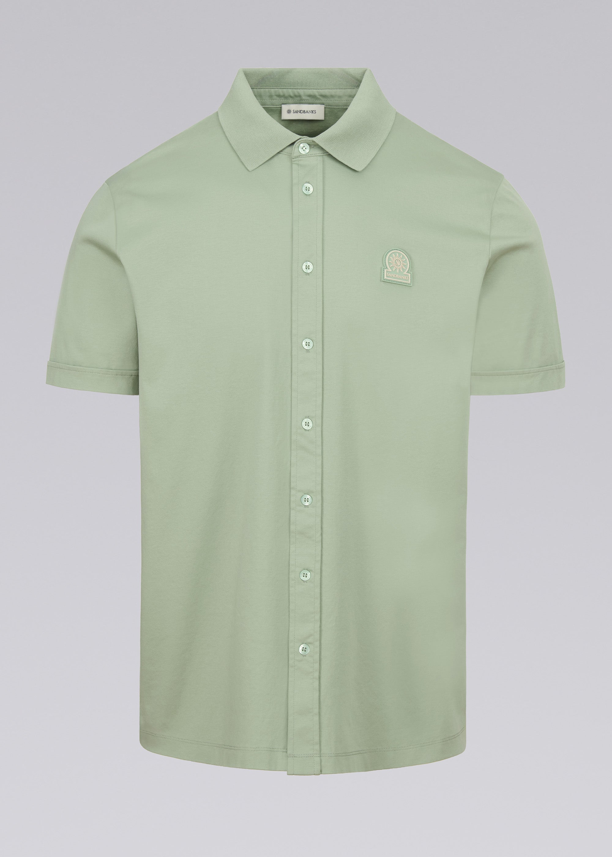 Sandbanks Full Button Interlock Polo Shirt - Sage