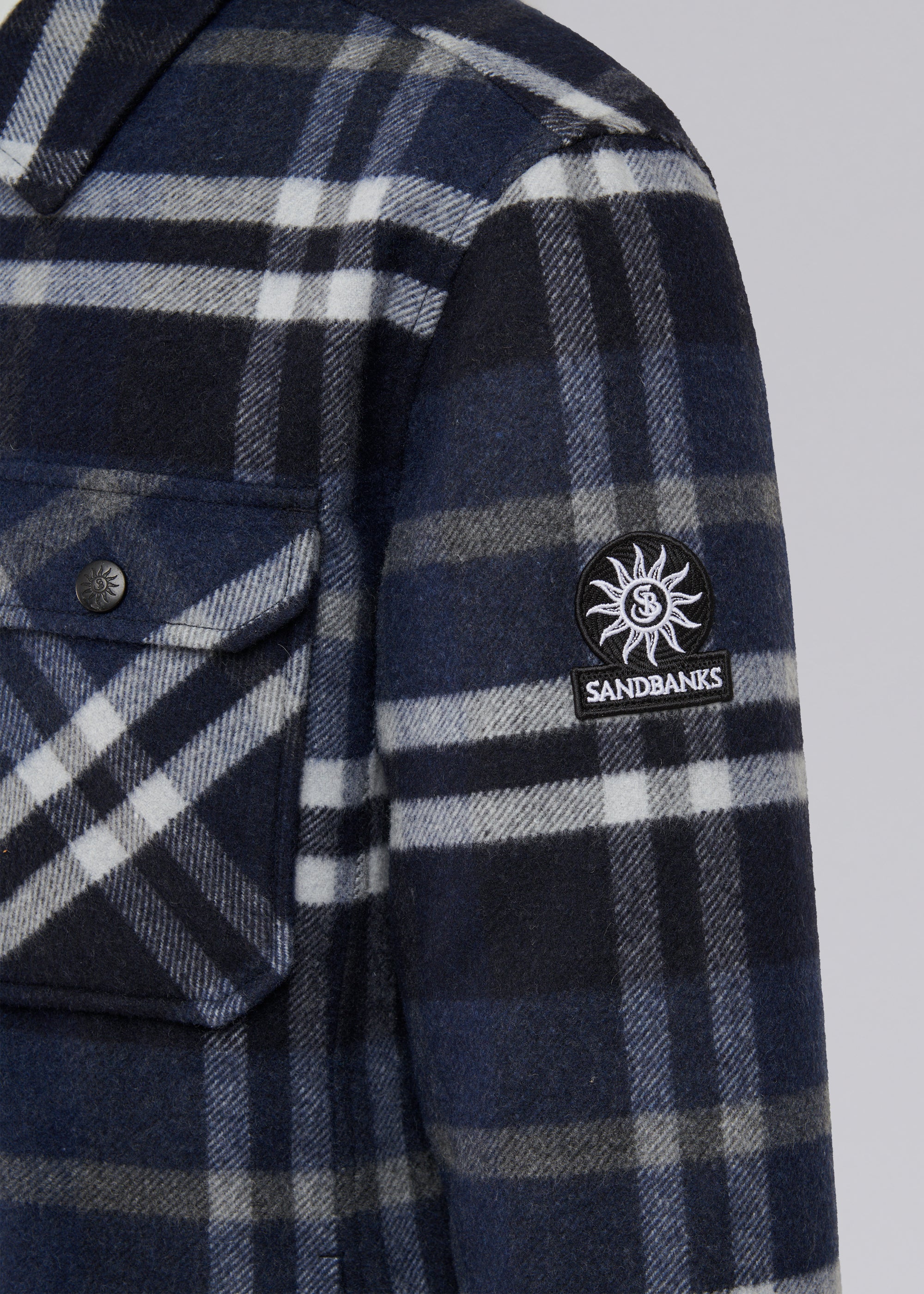 Sandbanks Badbury Check Quilted Wool Blend Overshirt - Navy