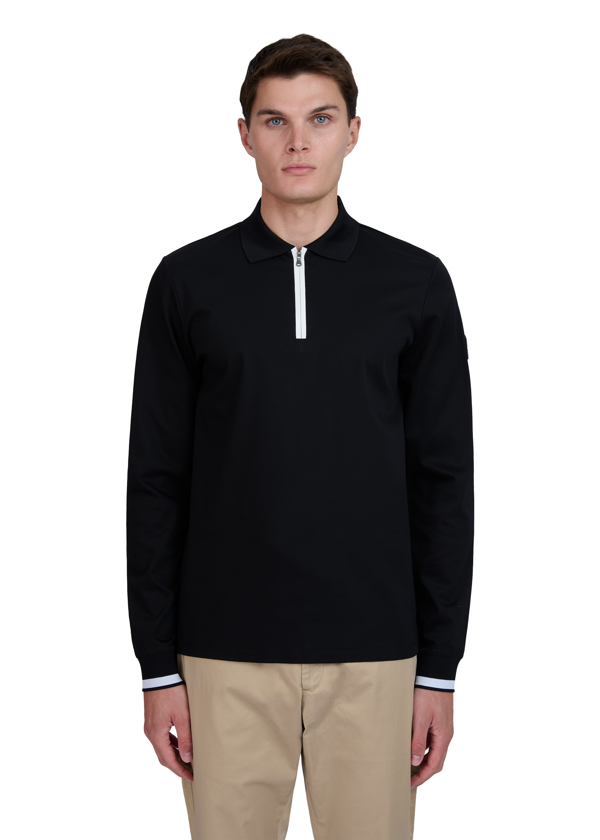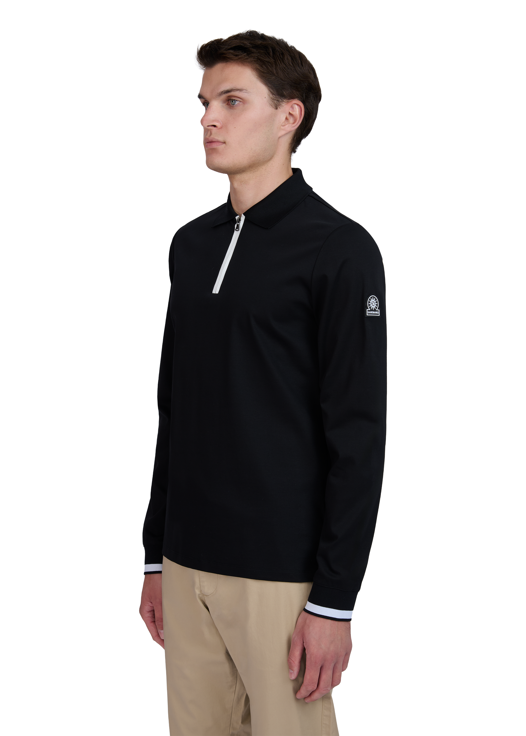 Sandbanks Silicone Zip Long Sleeve Polo Shirt - Black