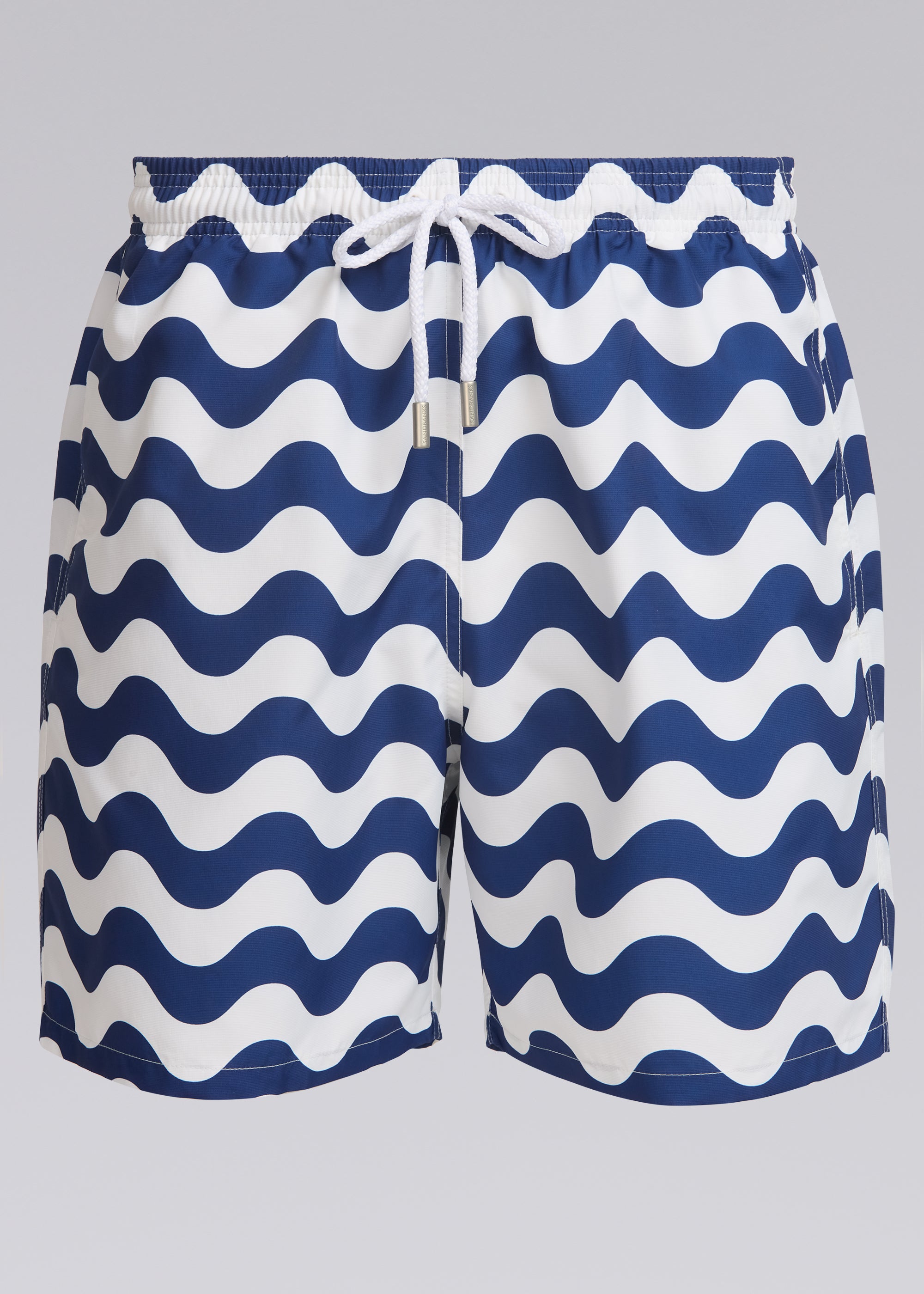 Sandbanks Geometric Wave Swim Shorts - Navy/White