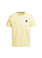 Sandbanks men's badge logo t-shirt in light yellow, made from mercerised cotton for a silky and luxurious feel. This classic fitting crew neck t-shirt features an embroidered badge logo on the chest and tri-colour back neck binding.