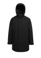 The Sandbanks Salterns jacket, a clean and contemporary looking jacket that features a black outer shell with eco-down puffer internal. This jacket has high thermal retention and featuring an adjustable hood, embroidered logo badges, engraved black rubberised components and zip pocket details.