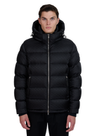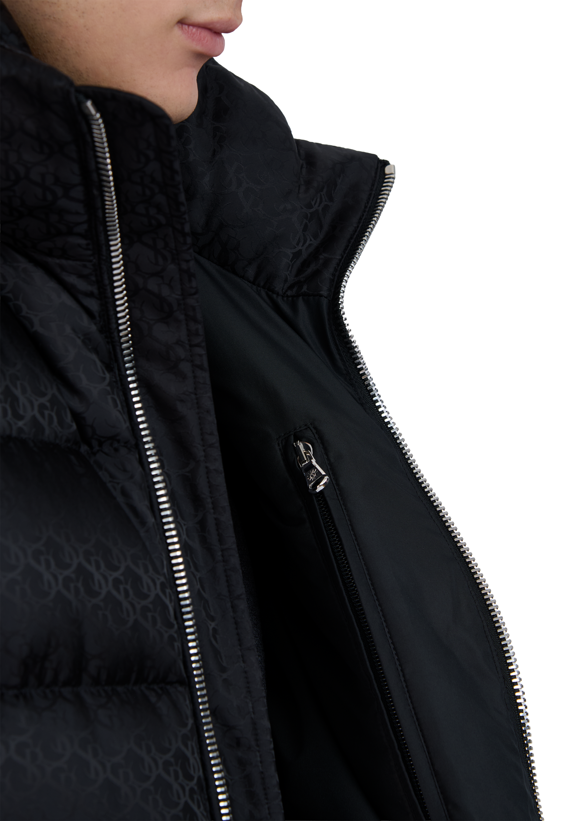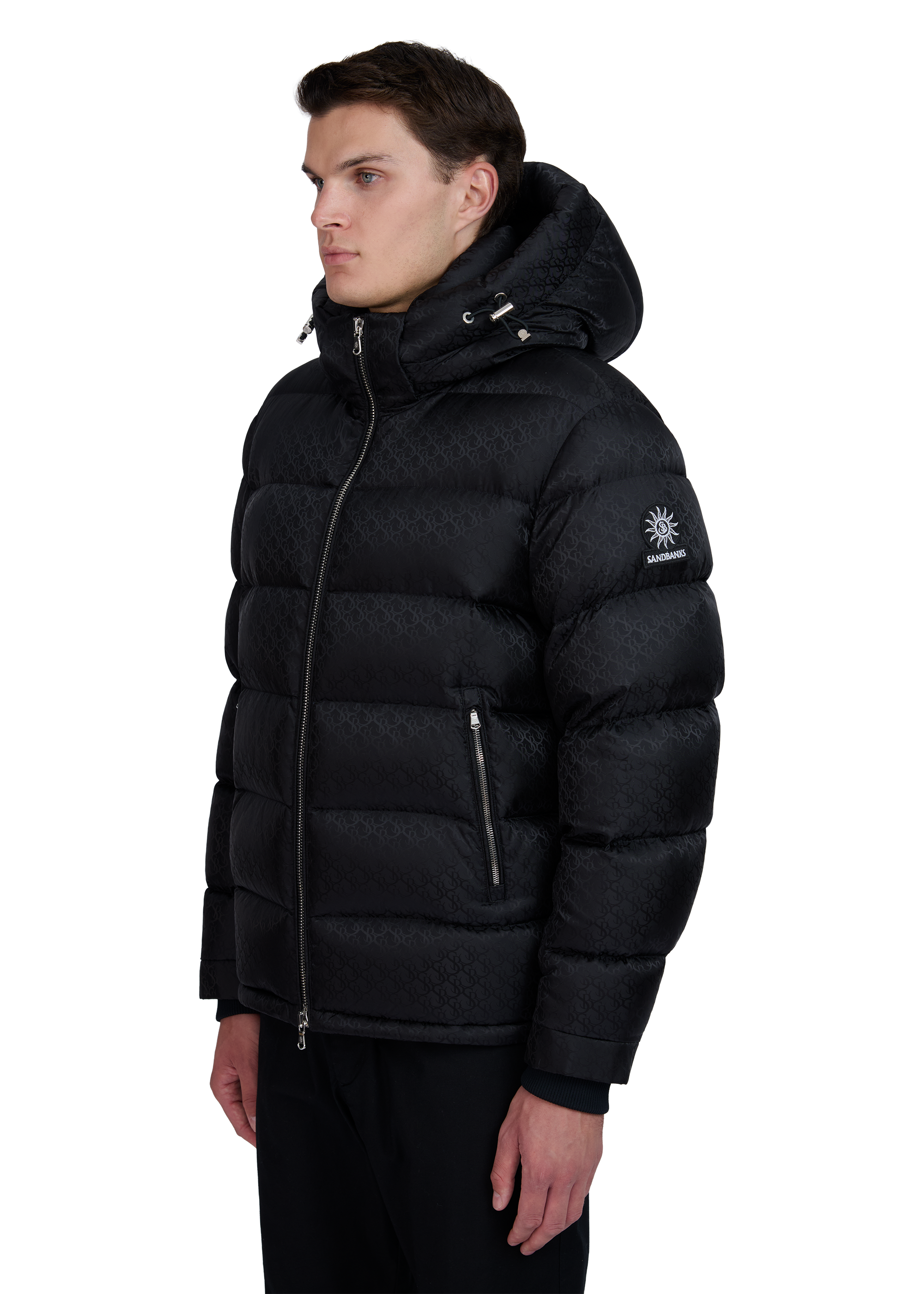 The monogram puffer in black showcases a tonal monogram design that reflects Sandbanks signature identity with a modern, distinctive edge. Expertly crafted from high-quality Italian components and innovative recycled materials, it delivers exceptional warmth, structure, and durability.