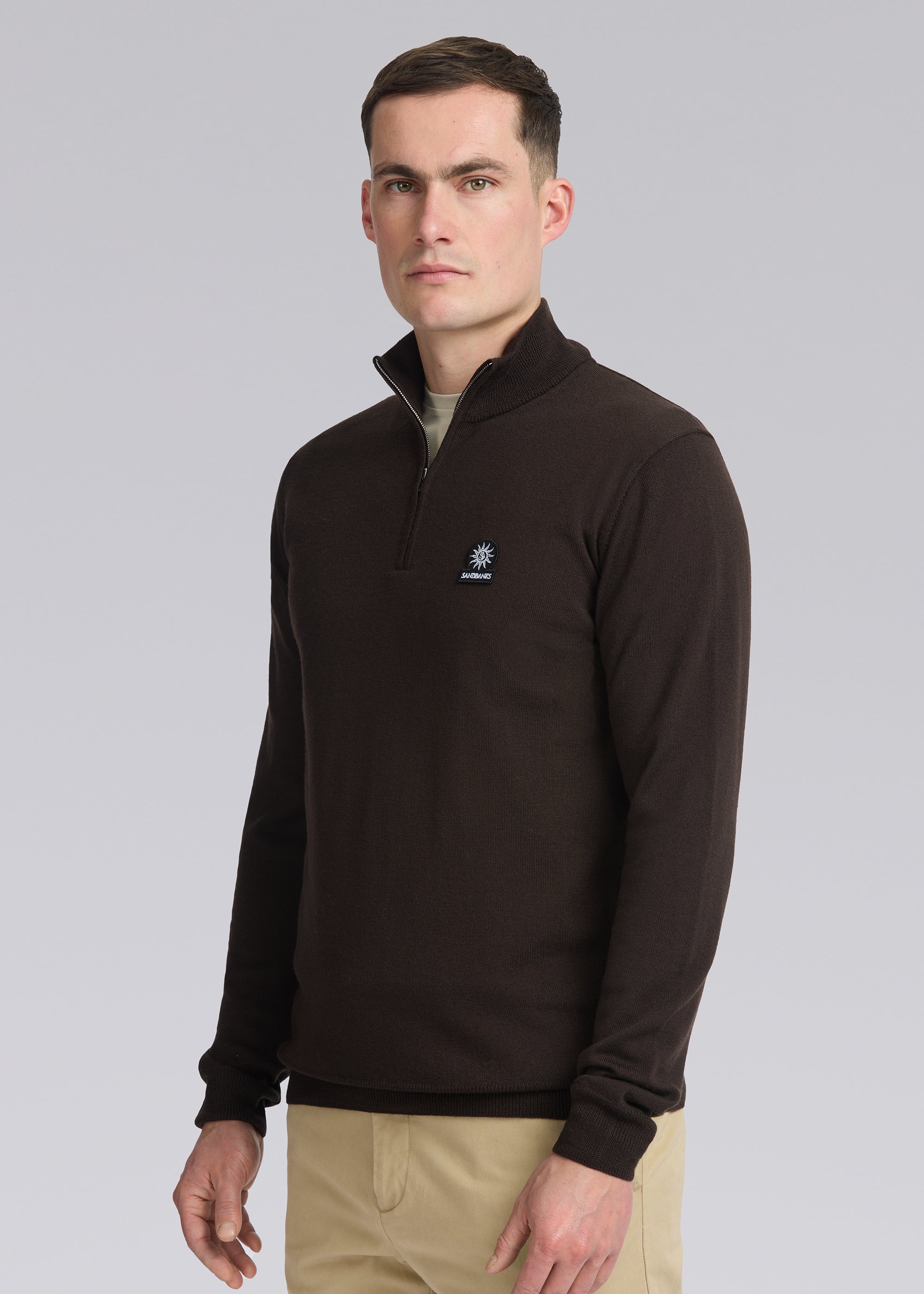 Sandbanks Fine Gauge Quarter Zip JumperBrown