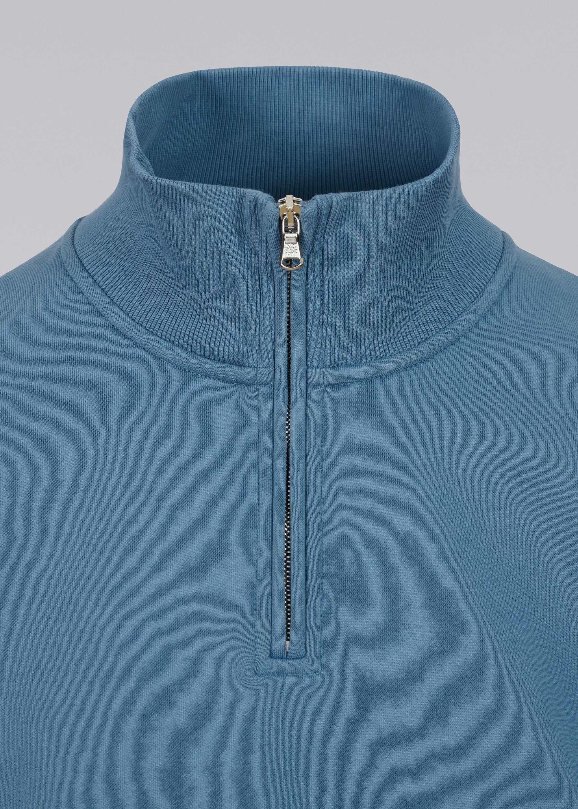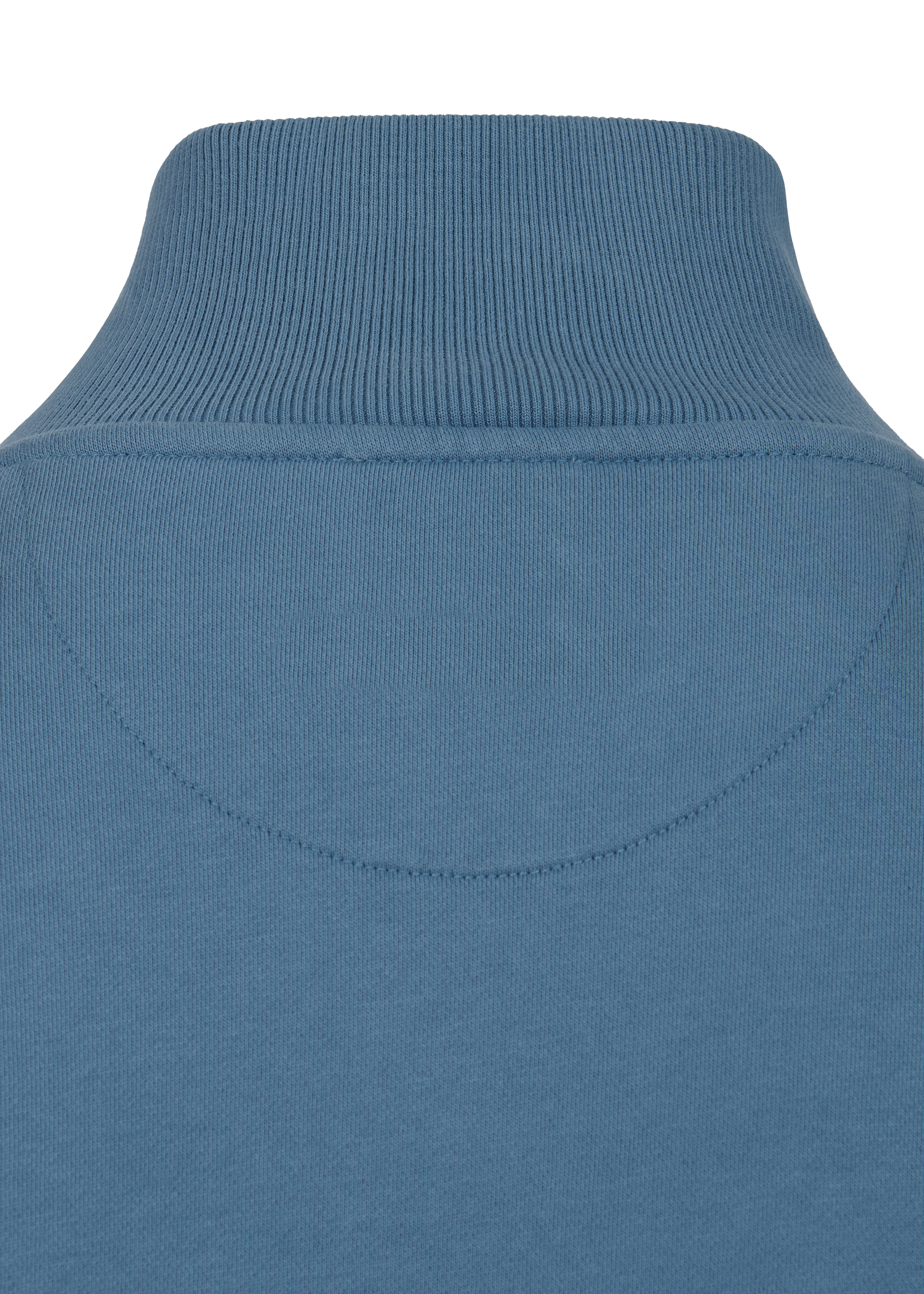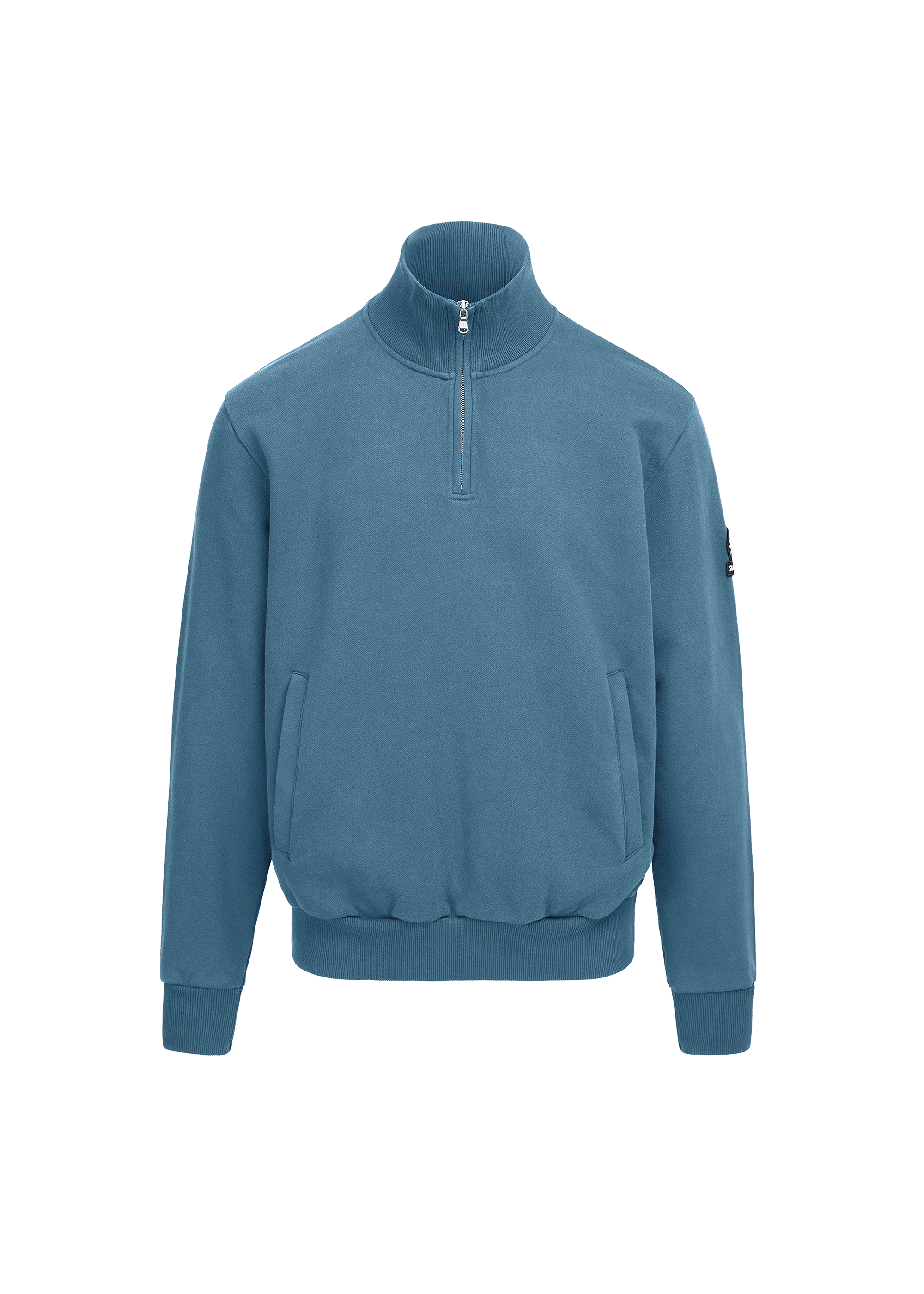 Sandbanks badge logo quarter zip sweatshirt in teal, made from a 400gsm diagonal knitted 100% BCI cotton fabric that features a slight brushed back for a superior soft feeling and warmth, whilst remaining breathable. This quarter zip sweatshirt features a Lampo metal zip in silver with a ribbed neck.
