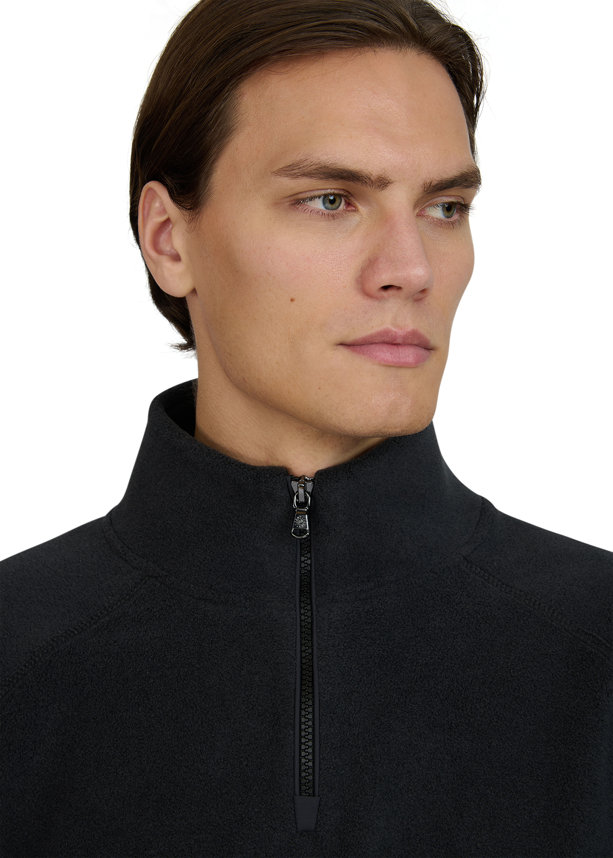 • Ribbed funnel neck with quarter zip