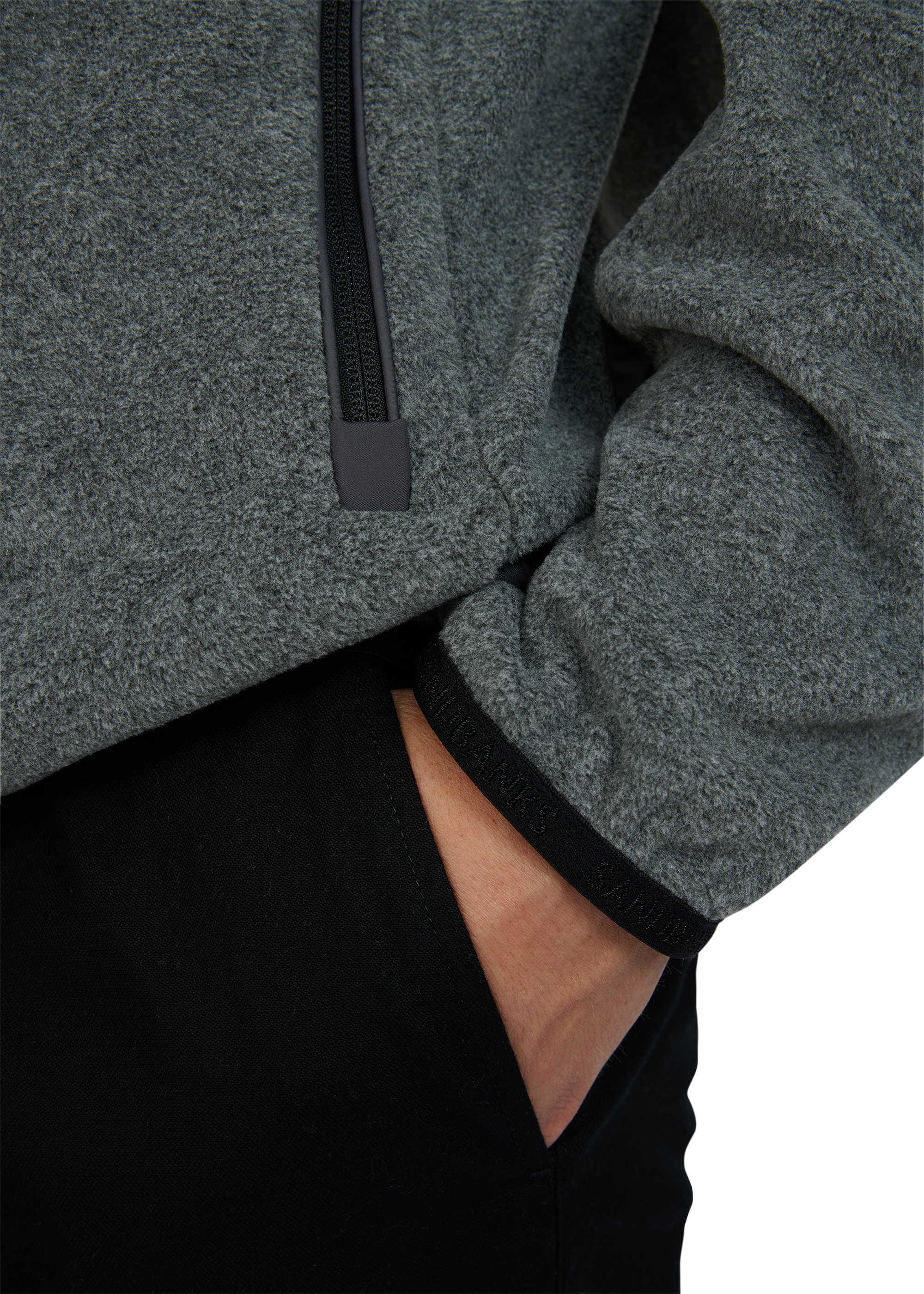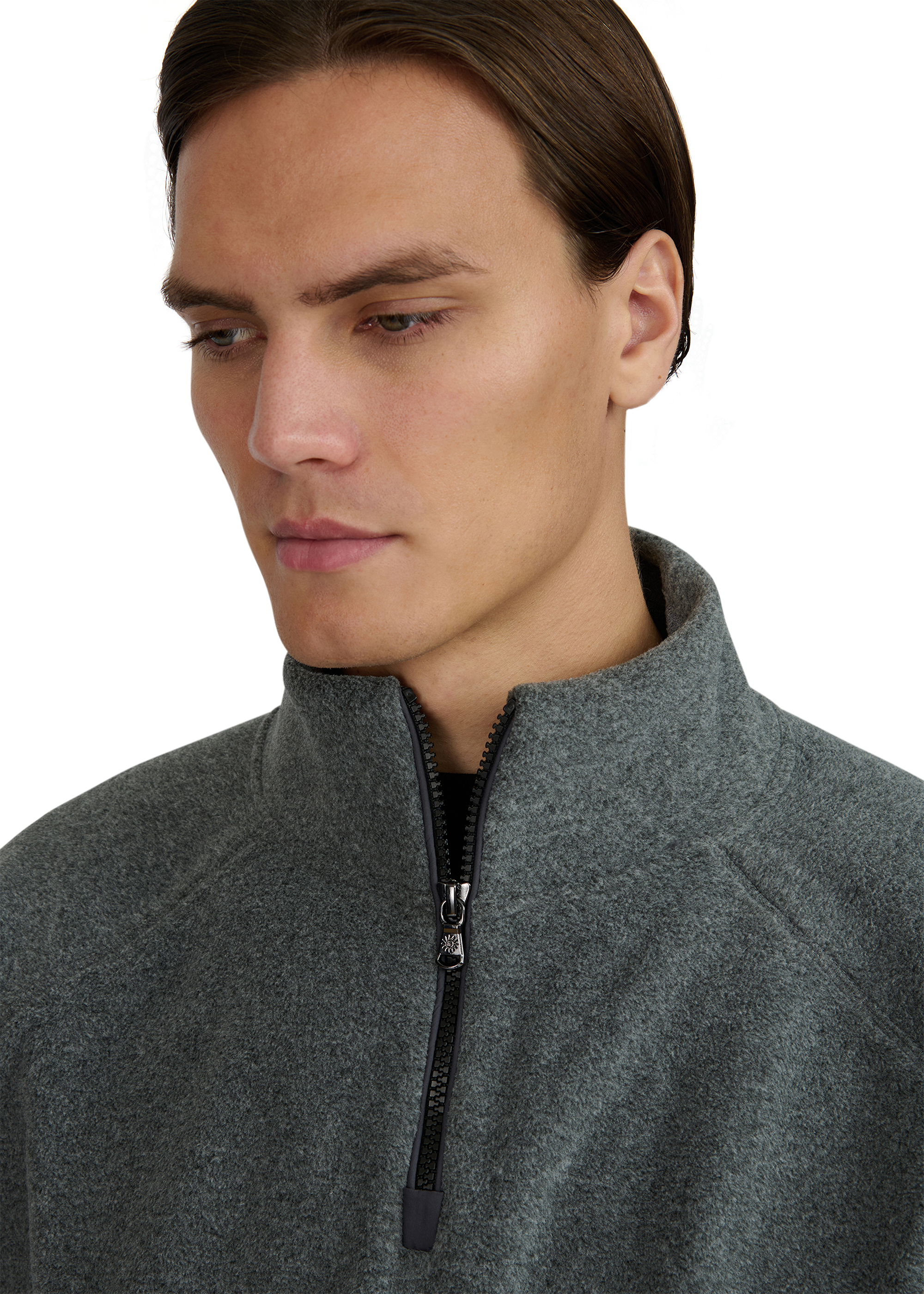 • Ribbed funnel neck with quarter zip