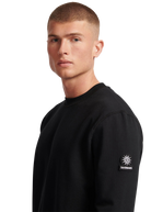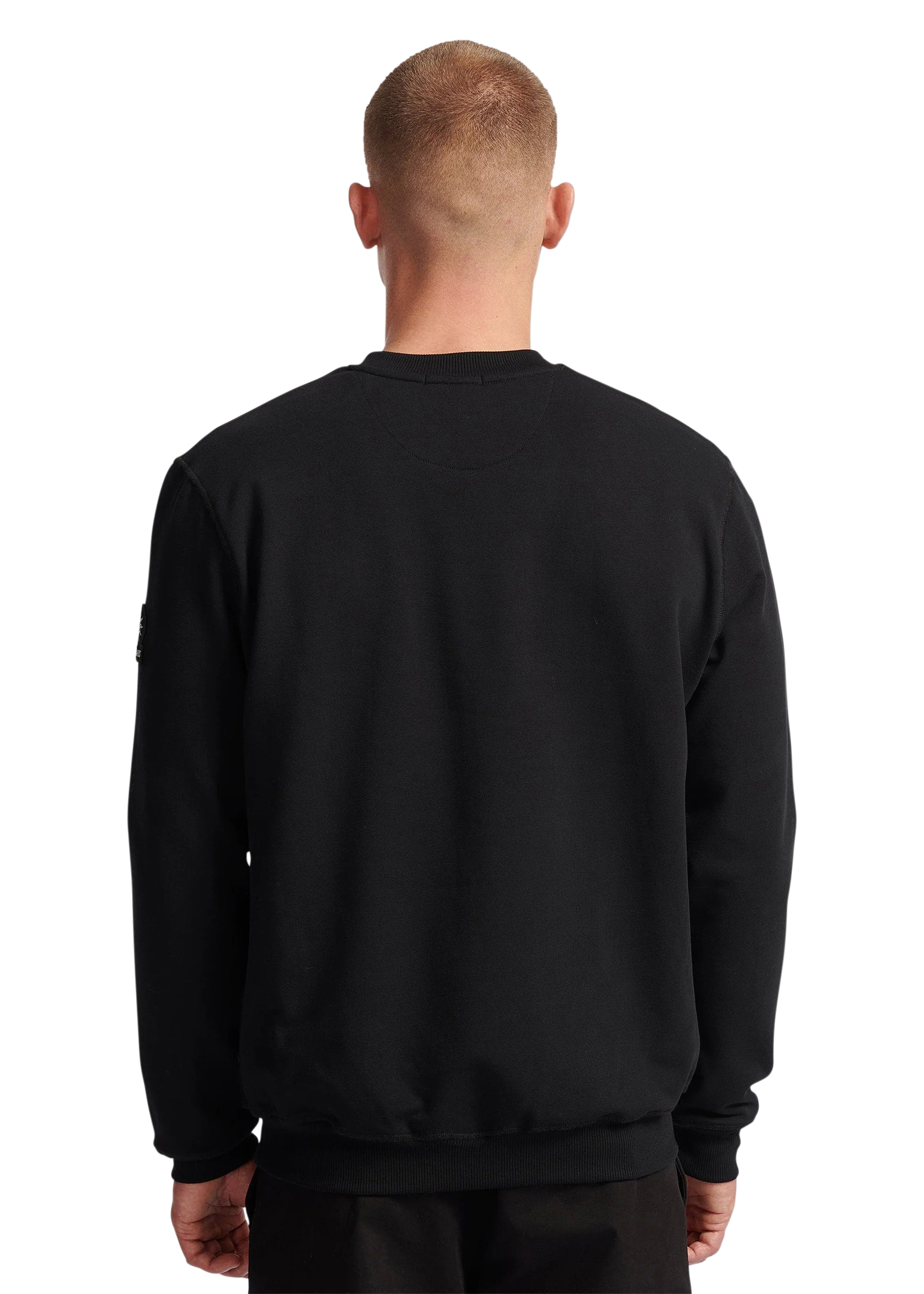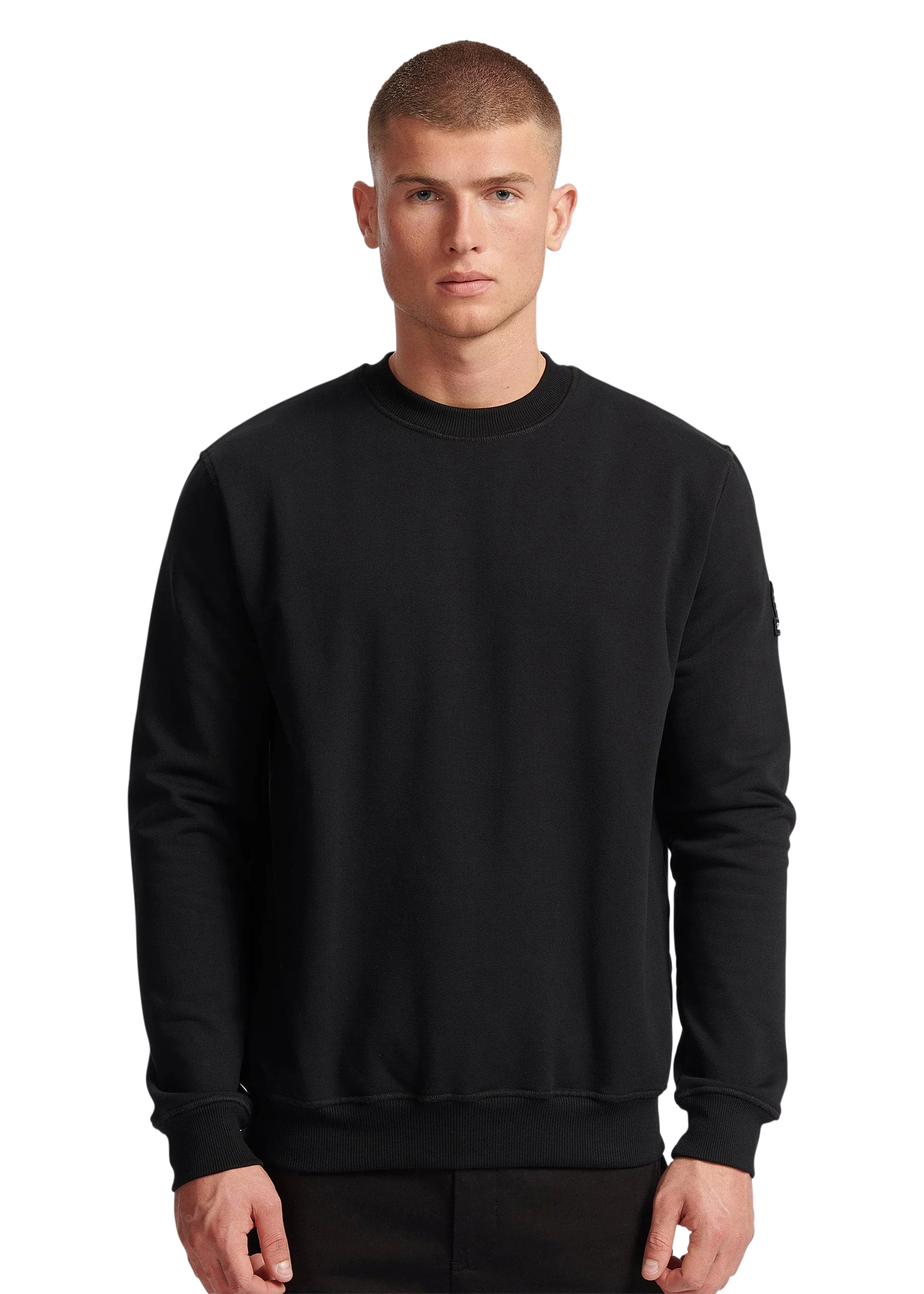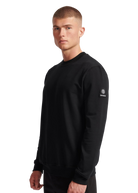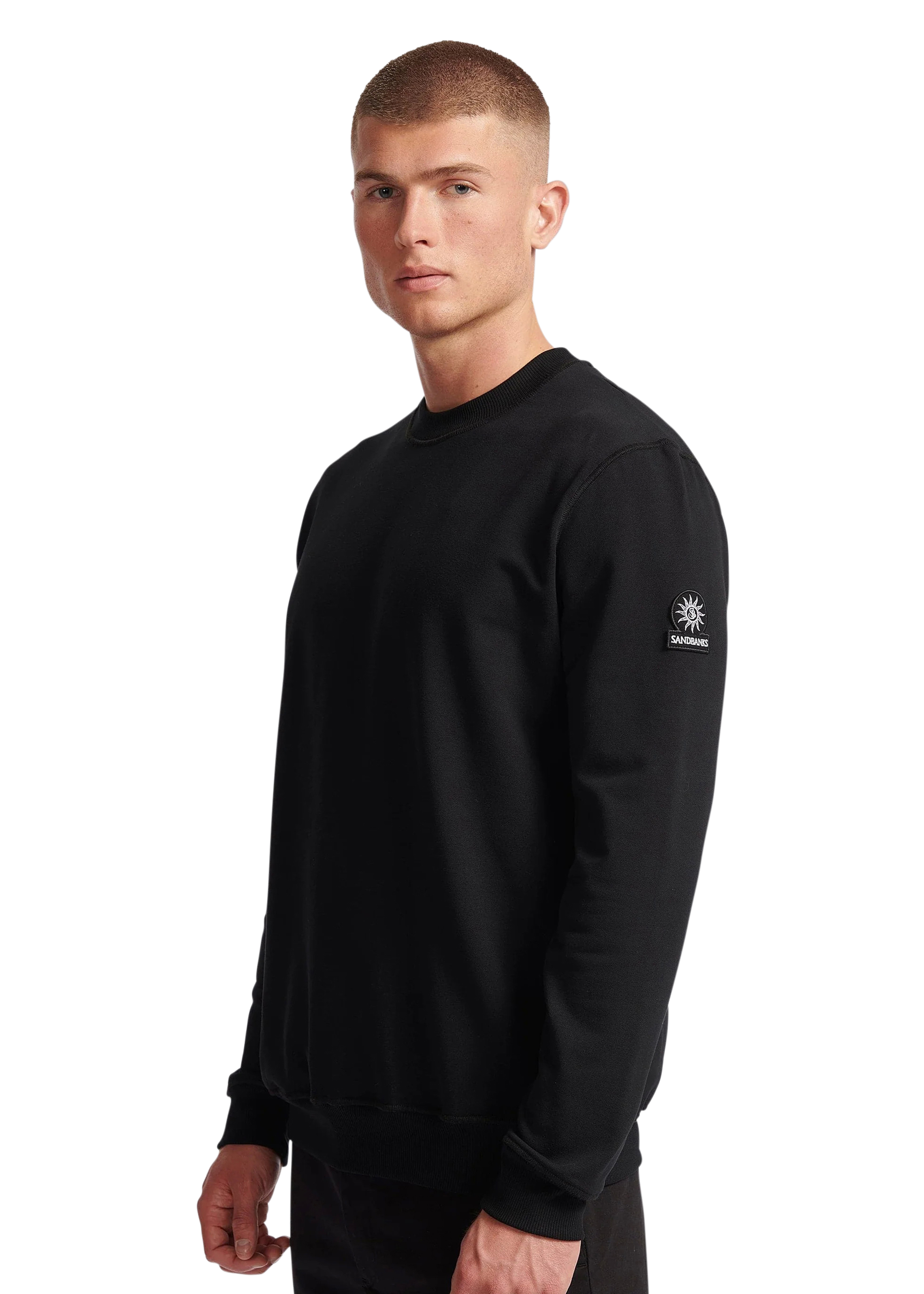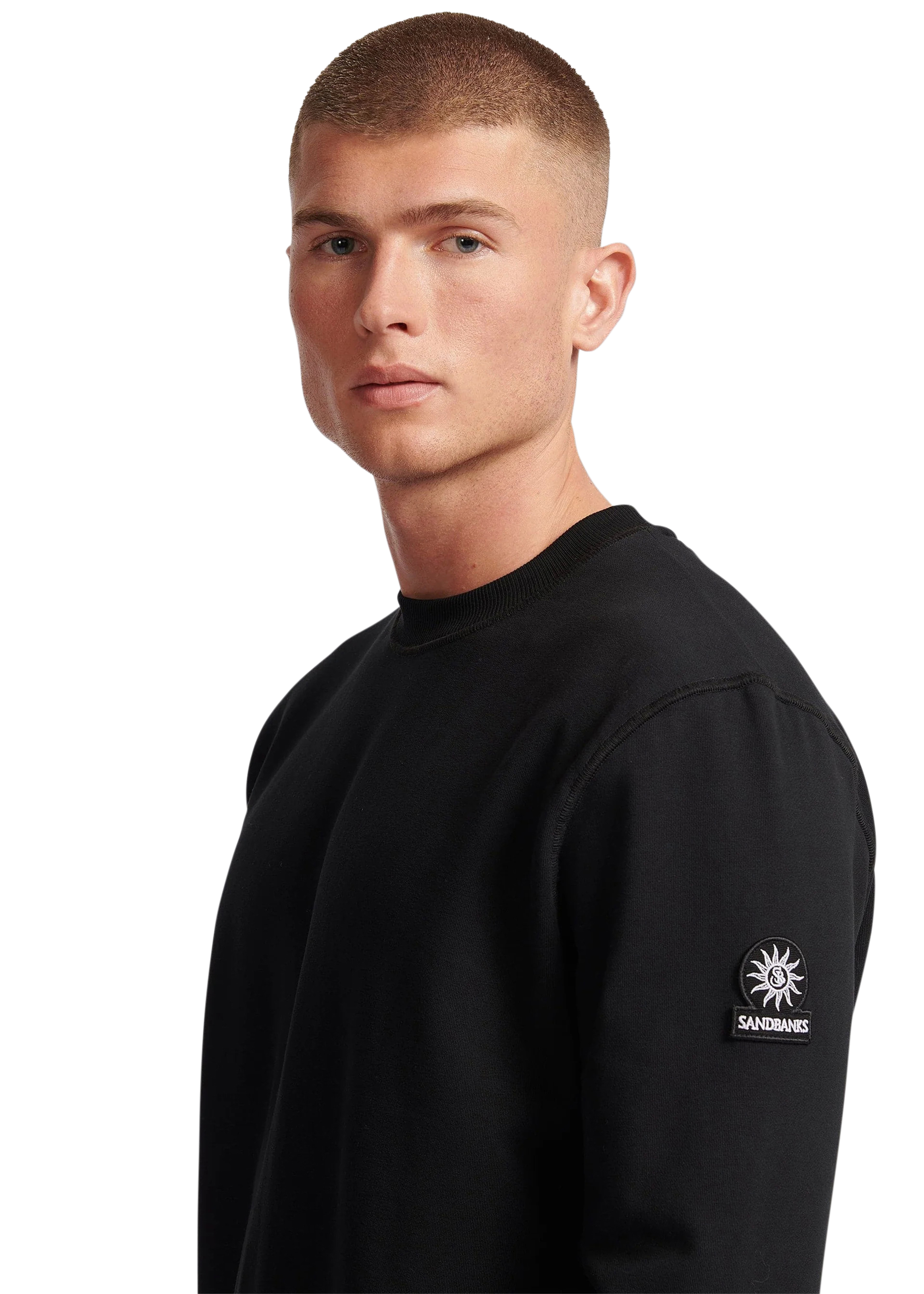 Our new and improved men's Sandbanks badge logo sweatshirt in navy. This garment has been upgraded with a 380gsm diagonal weave knitted fabric that features a slight brushed back for a superior soft feeling and warmth, whilst remaining breathable. Made from a 95% cotton 5% elastane for improved feel, shape retention and finished with a sleeve embroidered badge logo and cover stitch details.