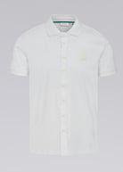 Sandbanks men's Full Button Interlock polo shirt in white, made from 100% mercerised interlock organic cotton for a soft and luxurious handle. This polo shirt features a rubber Sandbanks badge logo on the chest, tri-colour neck binding and white opaque Sandbanks branded buttons.
