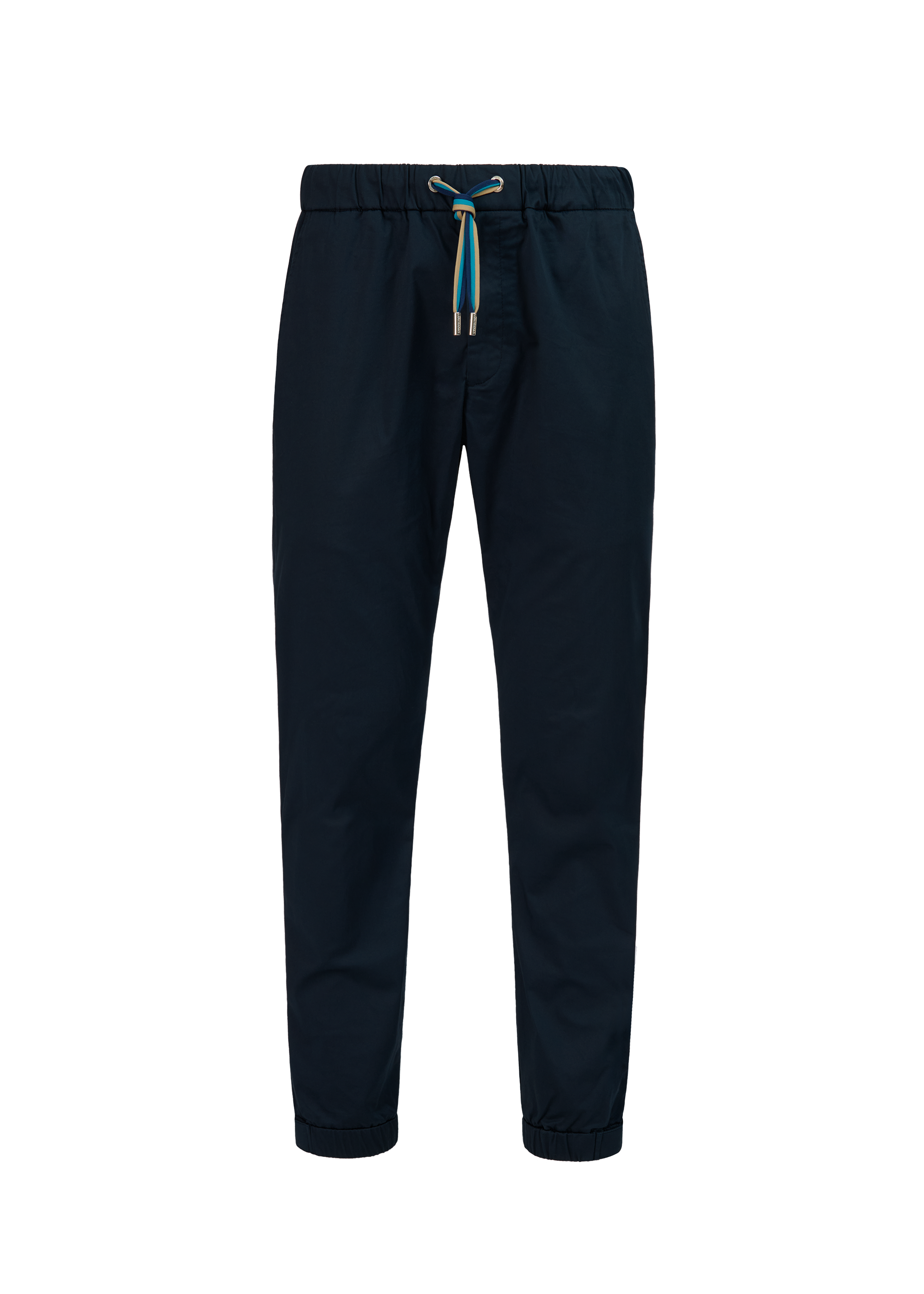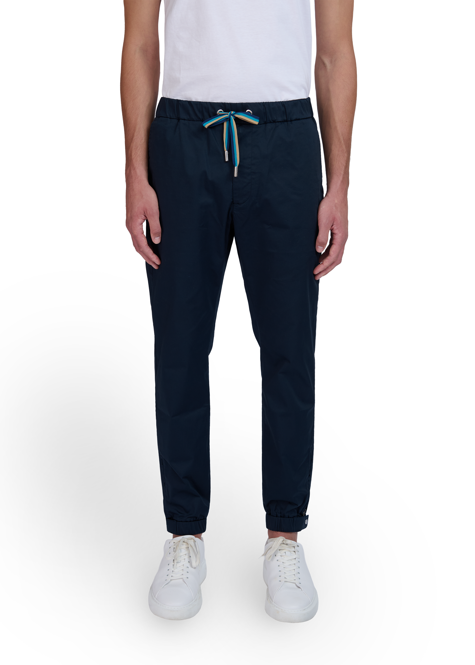These tapered trousers are expertly made from 97% organic cotton and 3% elastane, ensuring a sophisticated yet comfortable fit. They showcase a distinctive tri-colour drawstring with branded metal eyelets and cord ends, alongside snap closure poppers on the cuffs for customisable adjustment. Additional details include a branded Lampo zip fly, a rear pocket and zip cuff adjusters, and a subtle Sandbanks embroidered badge at the back.
