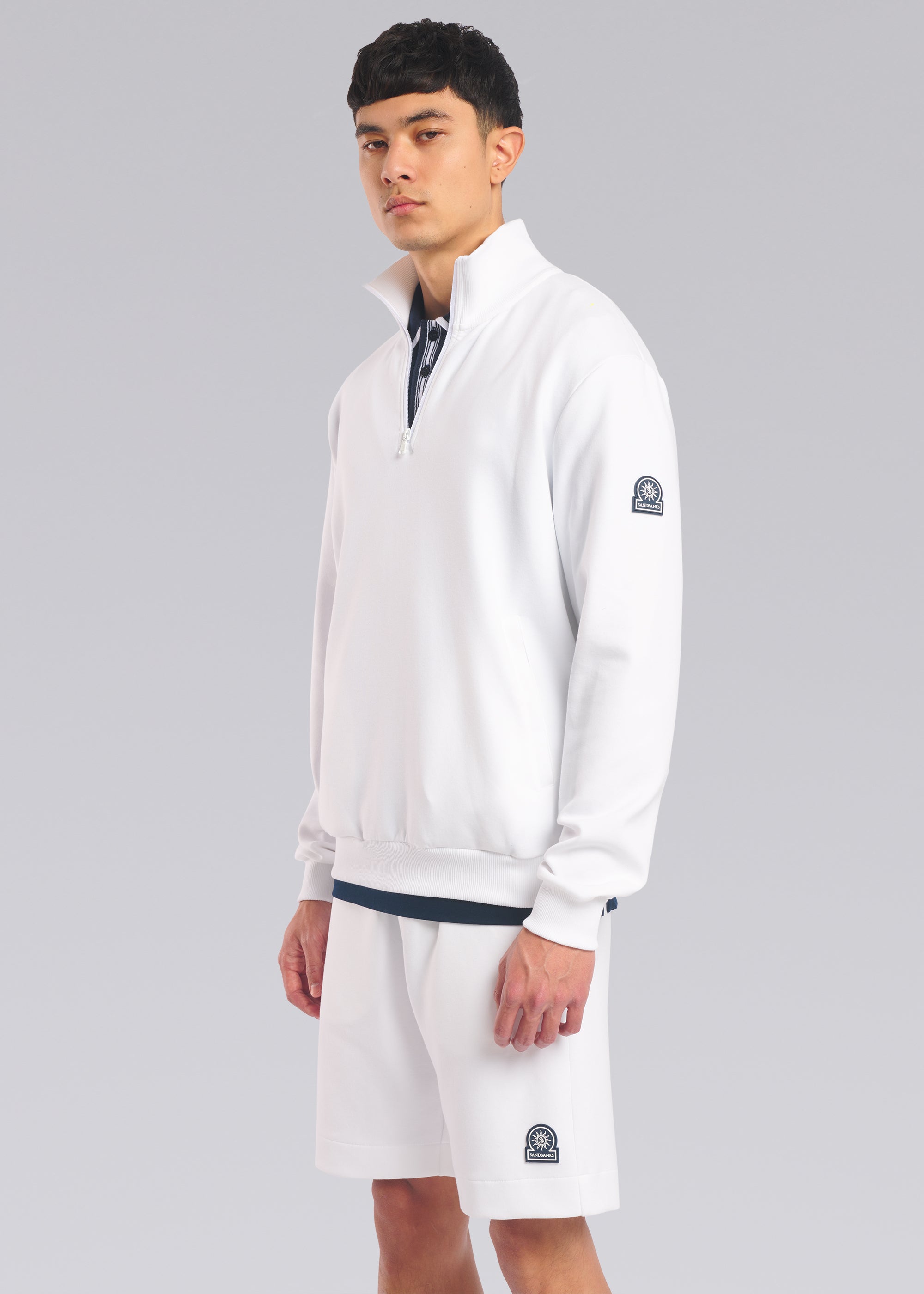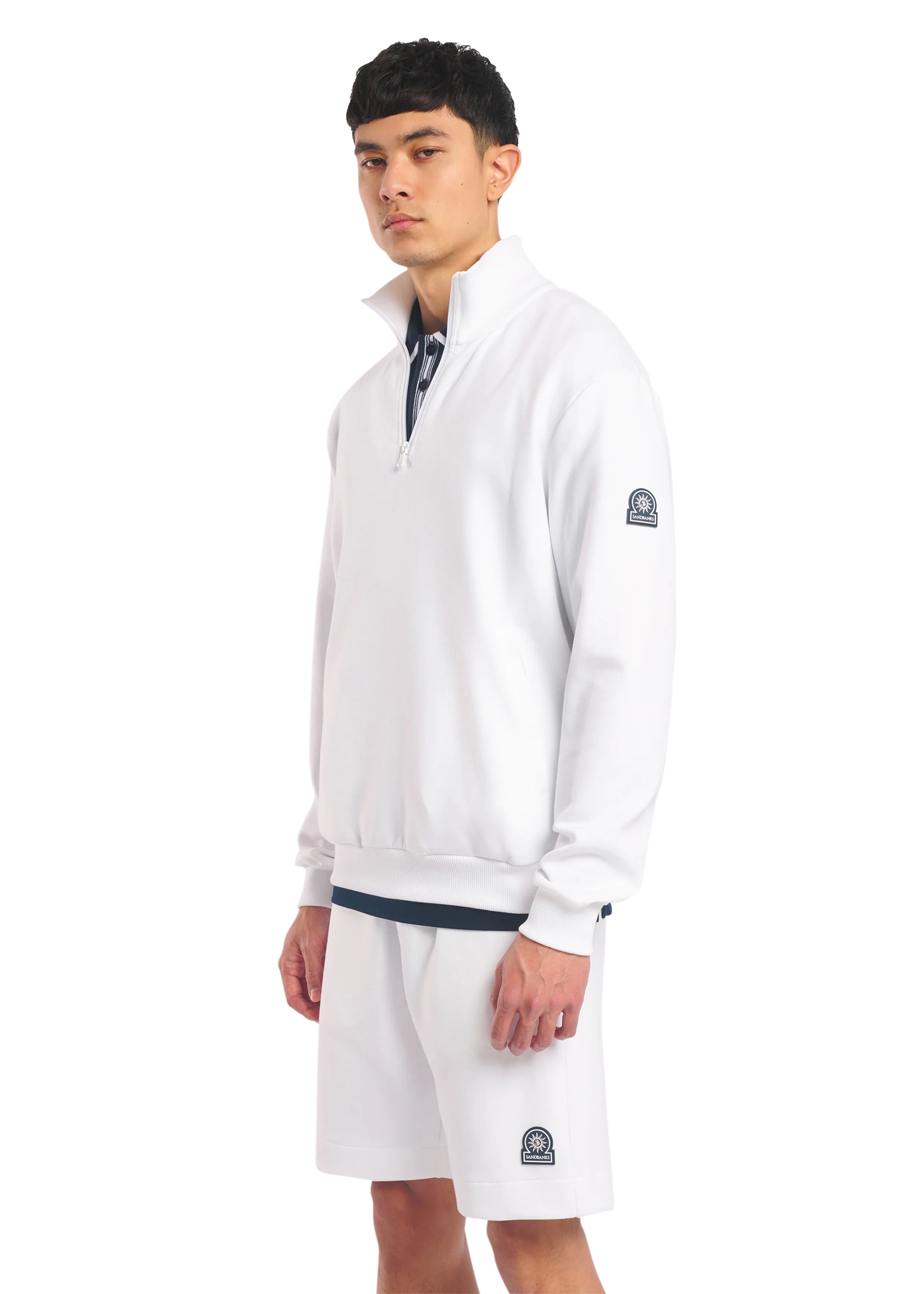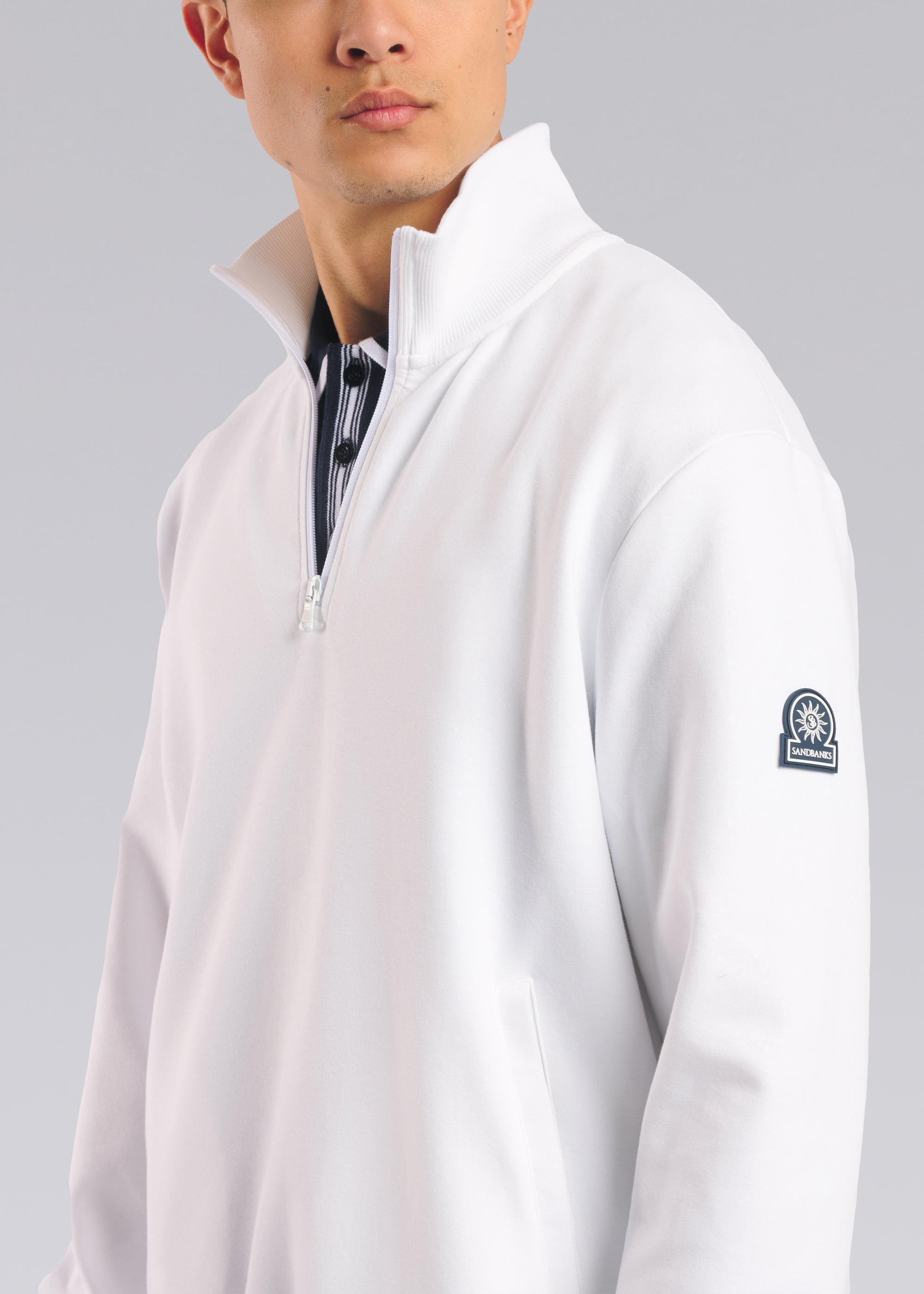 Sandbanks Interlock Quarter Zip SweatshirtWhite