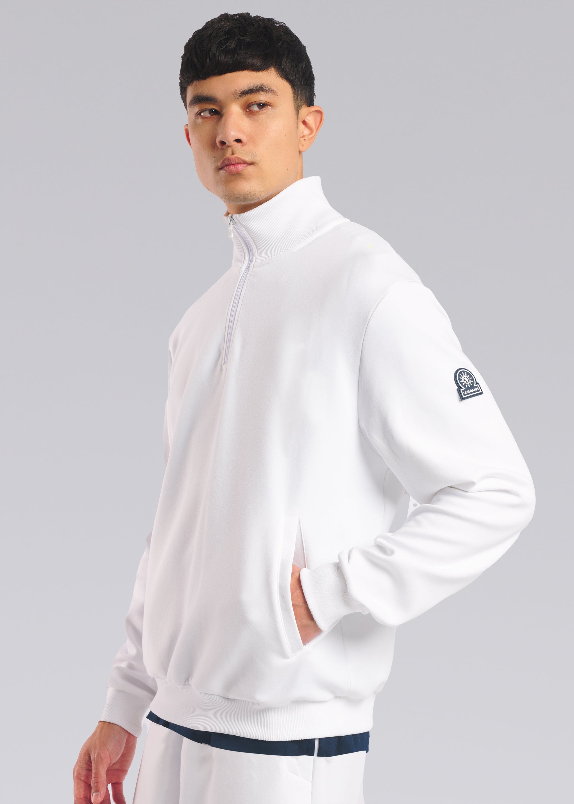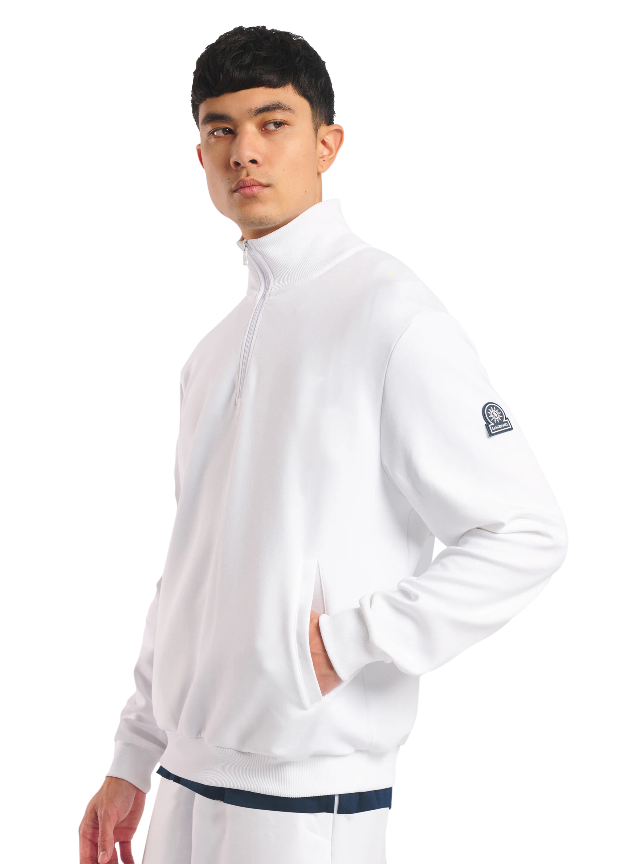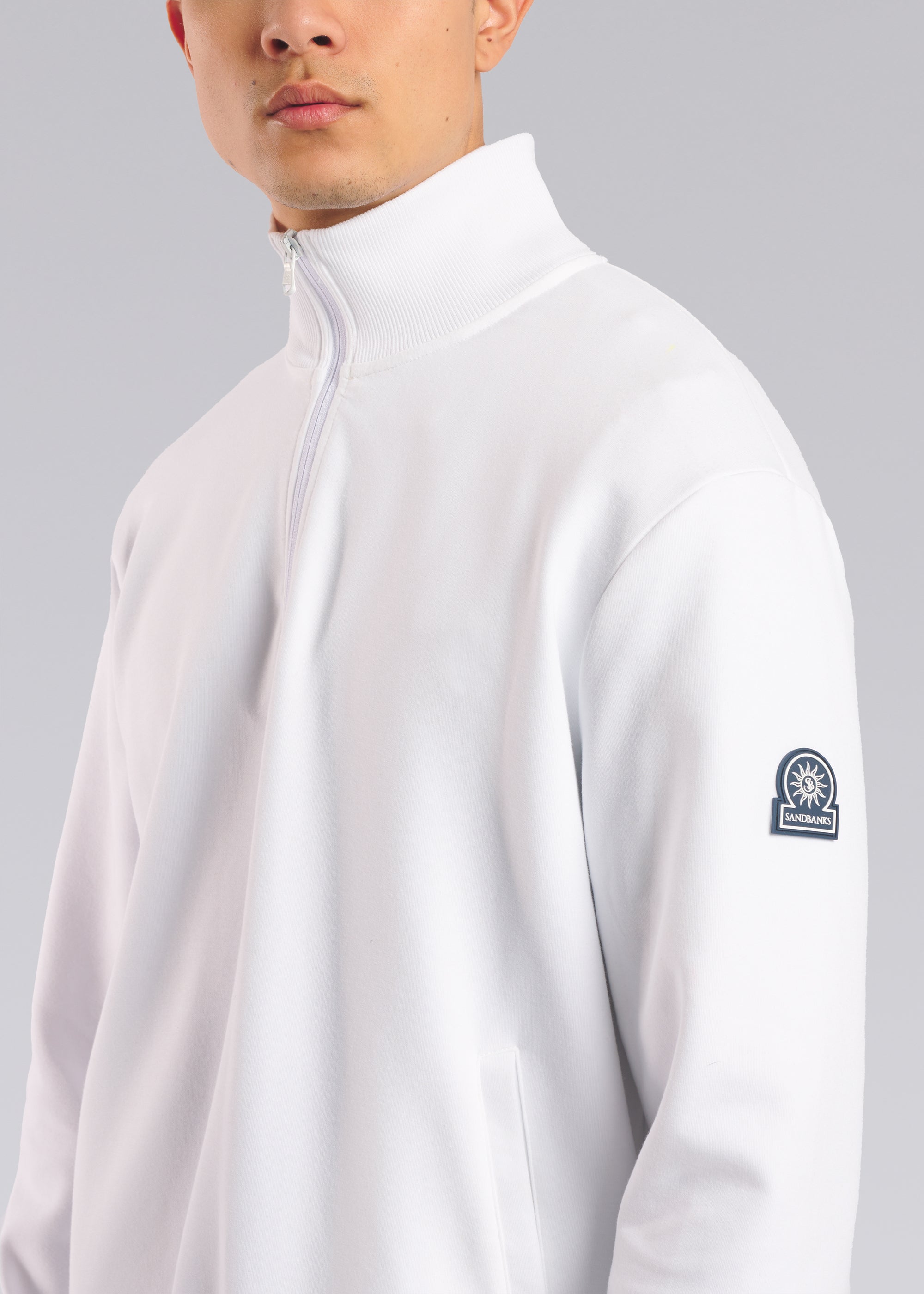 Sandbanks Interlock Quarter Zip SweatshirtWhite