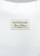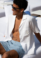The Sandbanks SB Seersucker Resort Shirt in crisp white offers a refined blend of style and comfort. Crafted from breathable seersucker fabric, it ensures a lightweight, airy feel ideal for warm climates. The elegant revere collar and subtle SB embroidered pocket add sophisticated details, making this shirt a luxurious choice for resort attire.