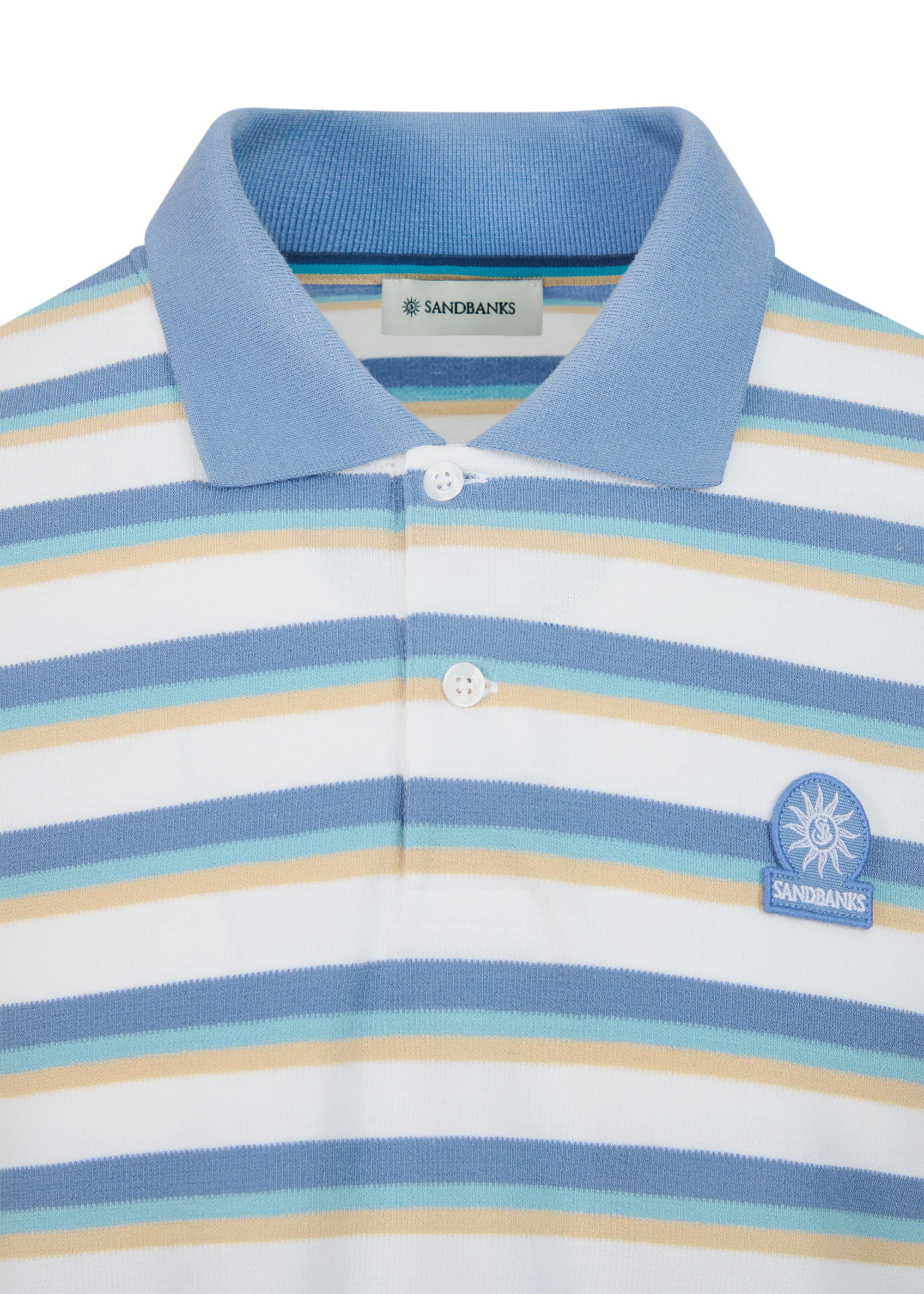 Introducing the Sandbanks Tri-Colour Fade Stripe Polo shirt in a multi stripe design for the season - a subtle, refined take on our signature tri-colour. Made from a soft textured jacquard fabric and complete with a light blue neck rib and embroidered badge.
